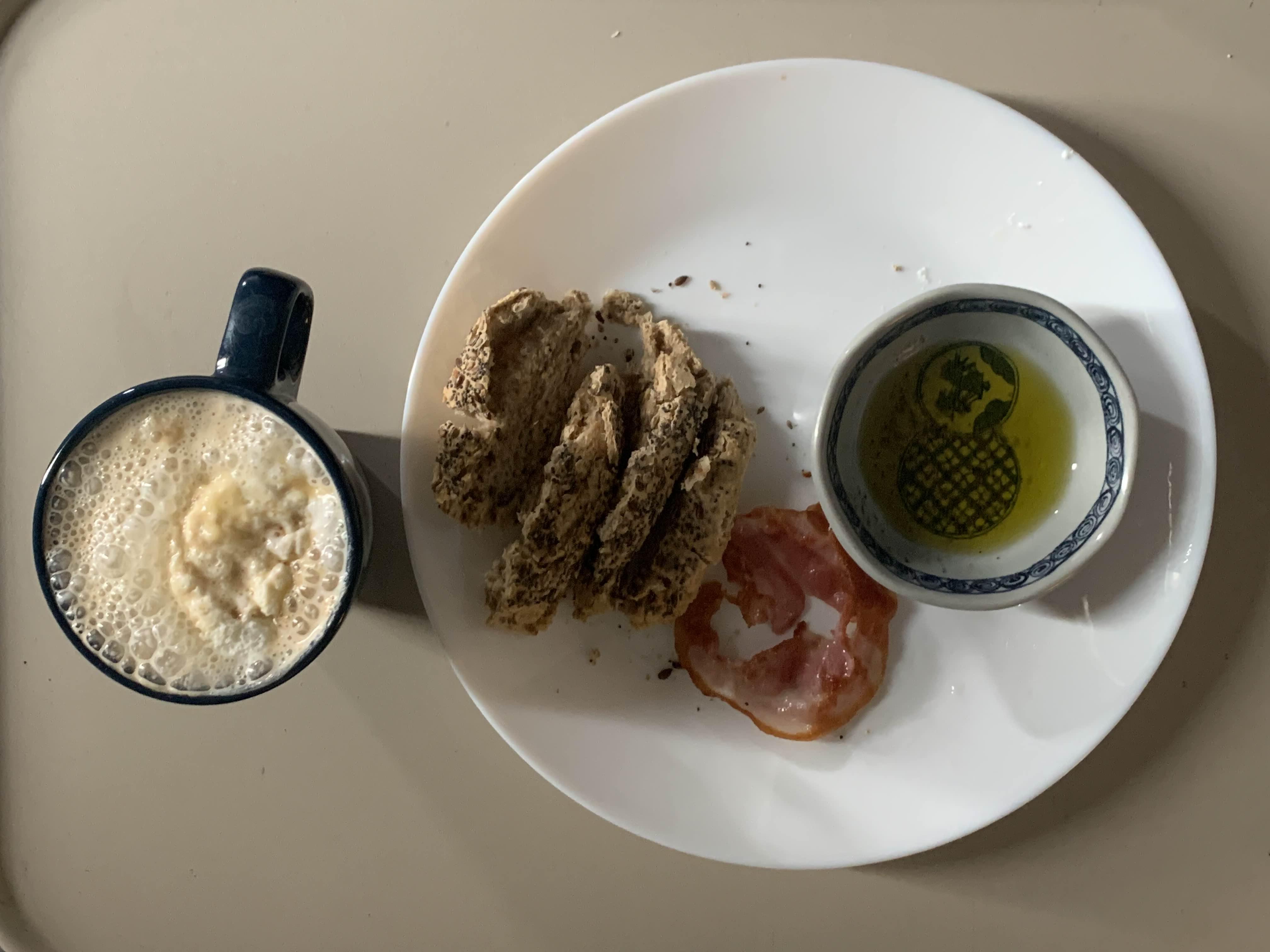 요새 빵,올리브오일,베이컨,커피 조합에 빠져서 하루 한끼는 이렇게 먹는듯하다.