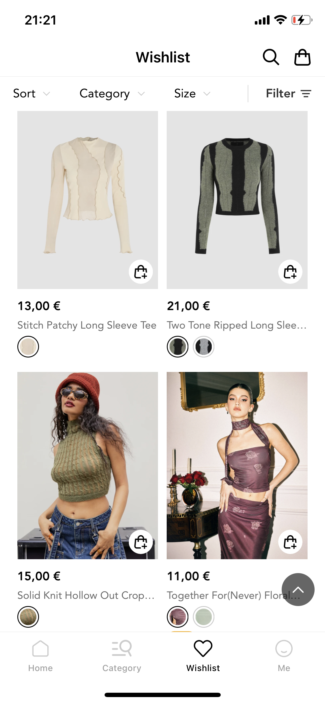 제가 위시리스트에 담아놓은 옷들이에요