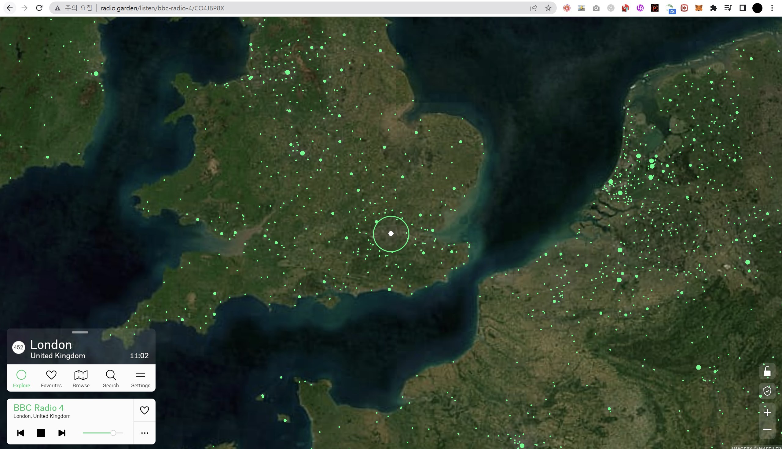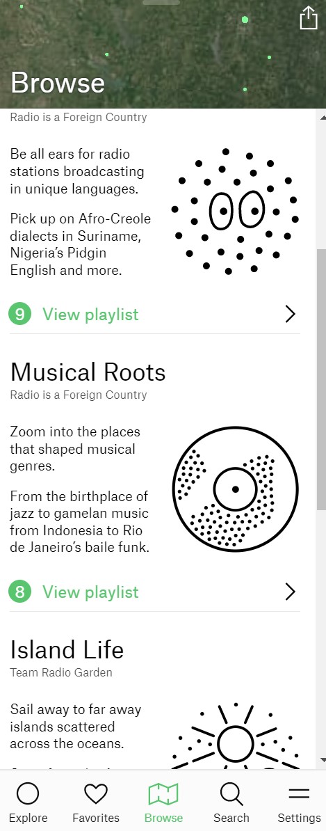 Radio Garden의 "Browse" 기본 메뉴에서는 세 가지 메뉴를 제공합니다.