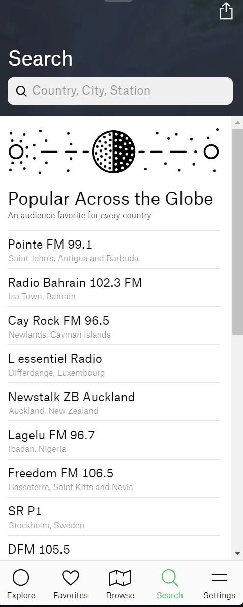 이러한 기본 메뉴를 통해 사용자는 지역, 언어, 장르를 기준으로 라디오 방송국을 쉽게 찾을 수 있습니다. 또한, "Search" 메뉴를 이용하면 특정 방송국 이름이나 키워드를 검색하여 원하는 방송국을 찾을 수도 있습니다.