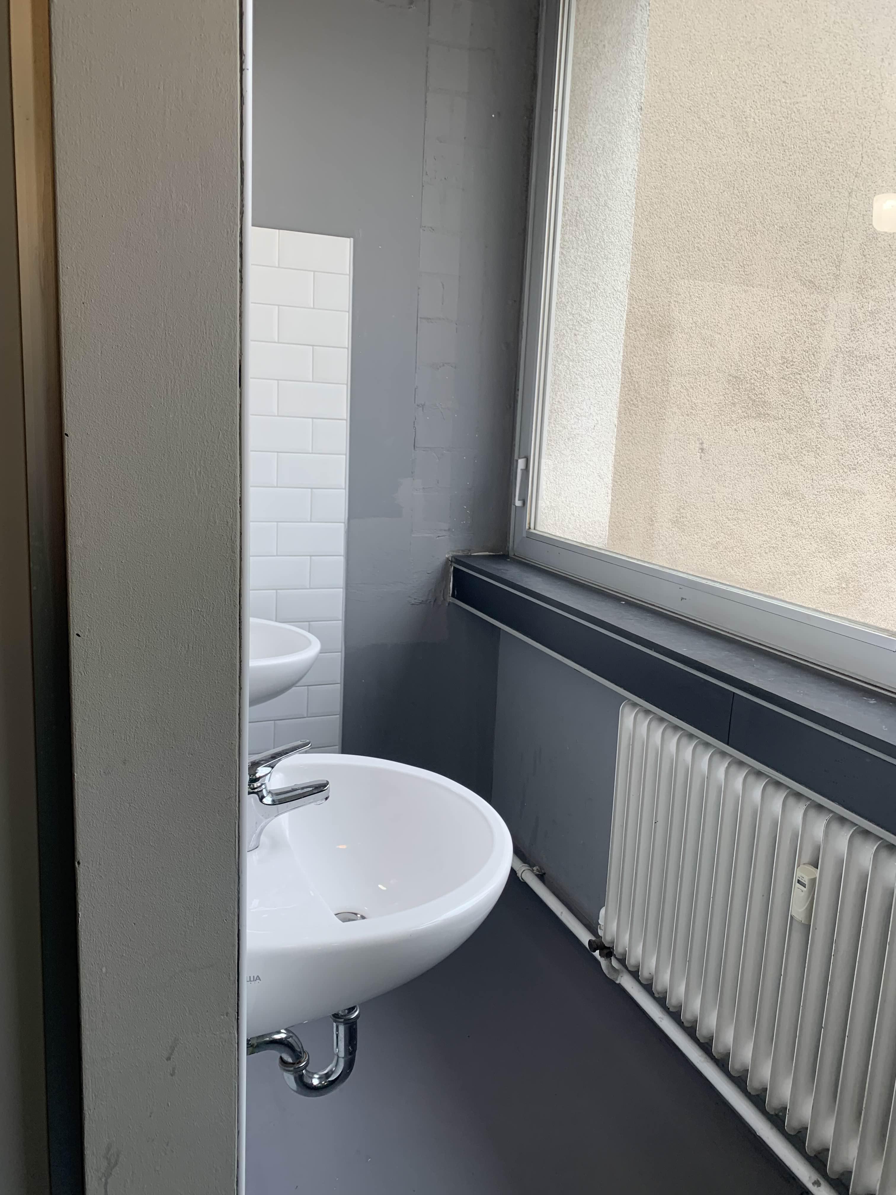 샤워부스는 총 3개이고 세면대는 두개이다