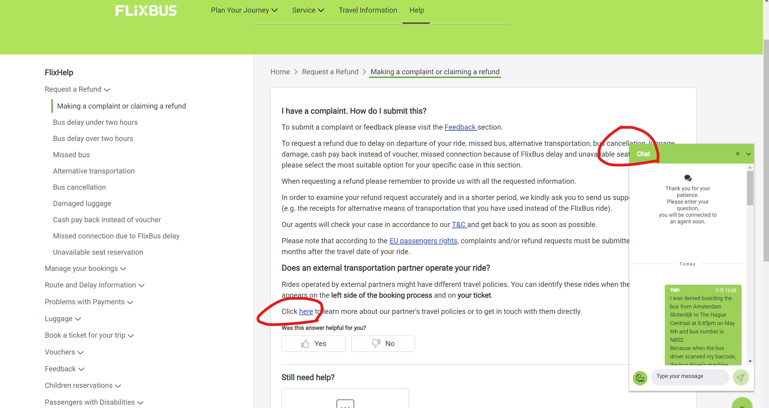 그래서 플릭스 버스 컴플레인걸어봄.