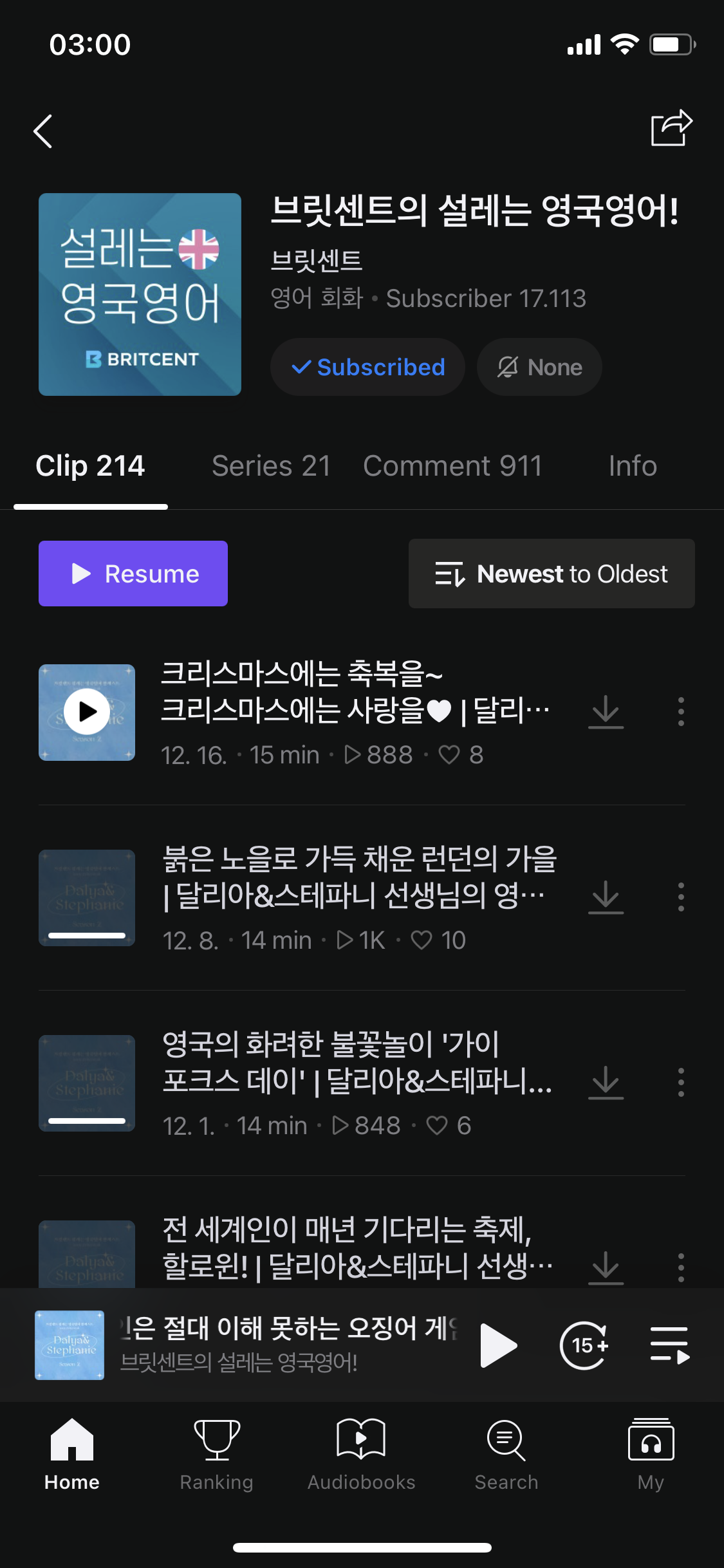 브릿센트는 네이버 팟캐스트,유투브에서 들으실 수 있어요