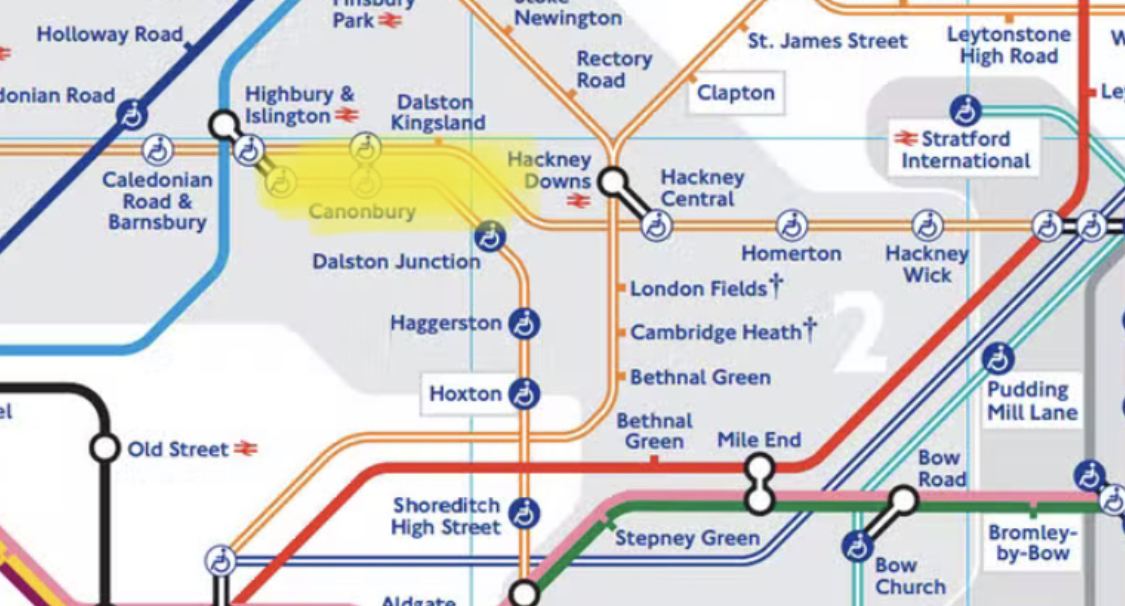 언더 그라운드(지하철) 가장 가까운 역은 캐논버리 혹은 달스턴 이지만