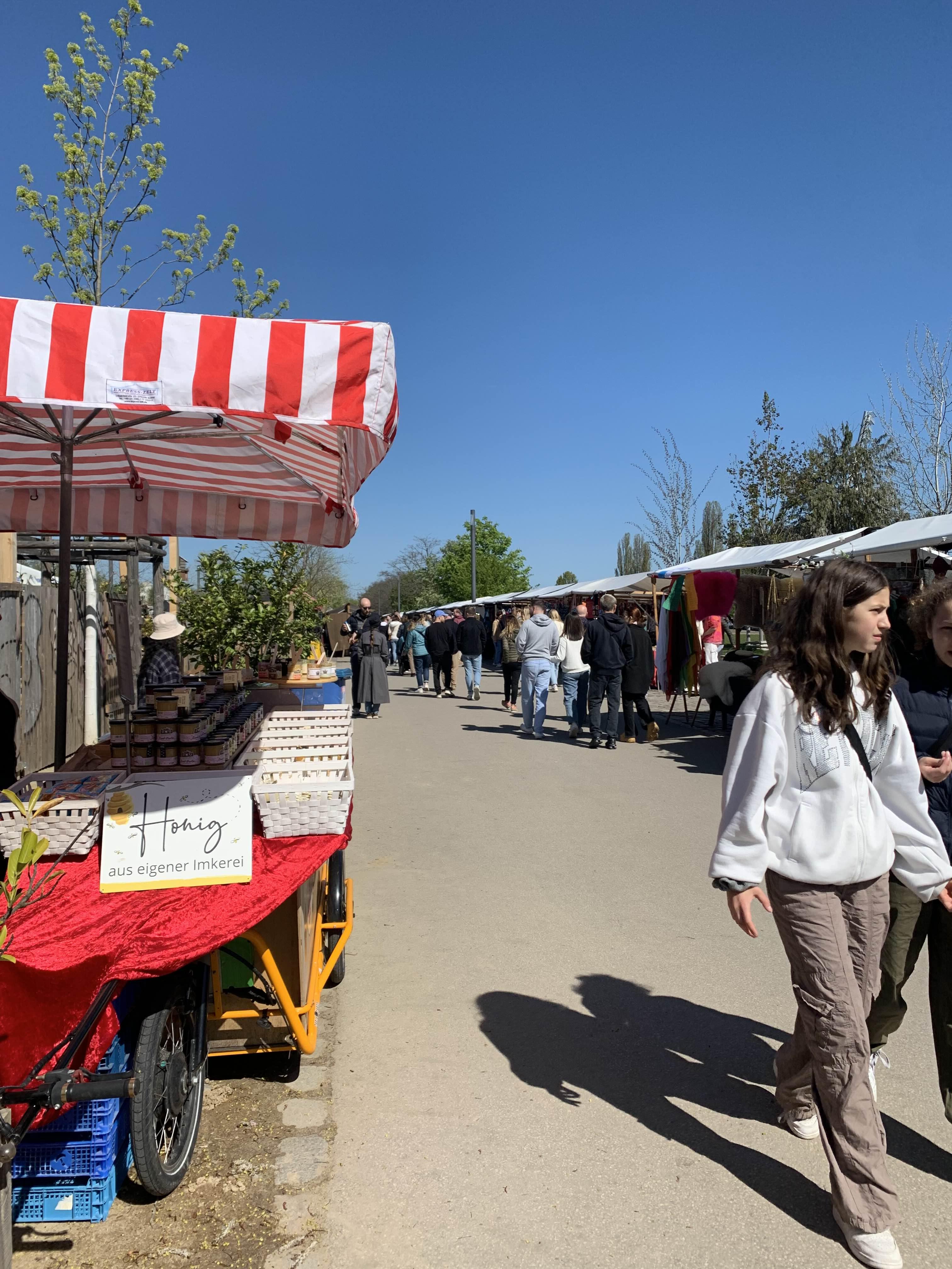 마우어파크 플로마켓은 여유로운 크리에이티브한 분위기로 유명합니다. 많은 방문객들이 부스 사이를 거닐며 독특한 물건을 찾고 다양한 사람들과 문화를 경험하는 것을 즐깁니다.