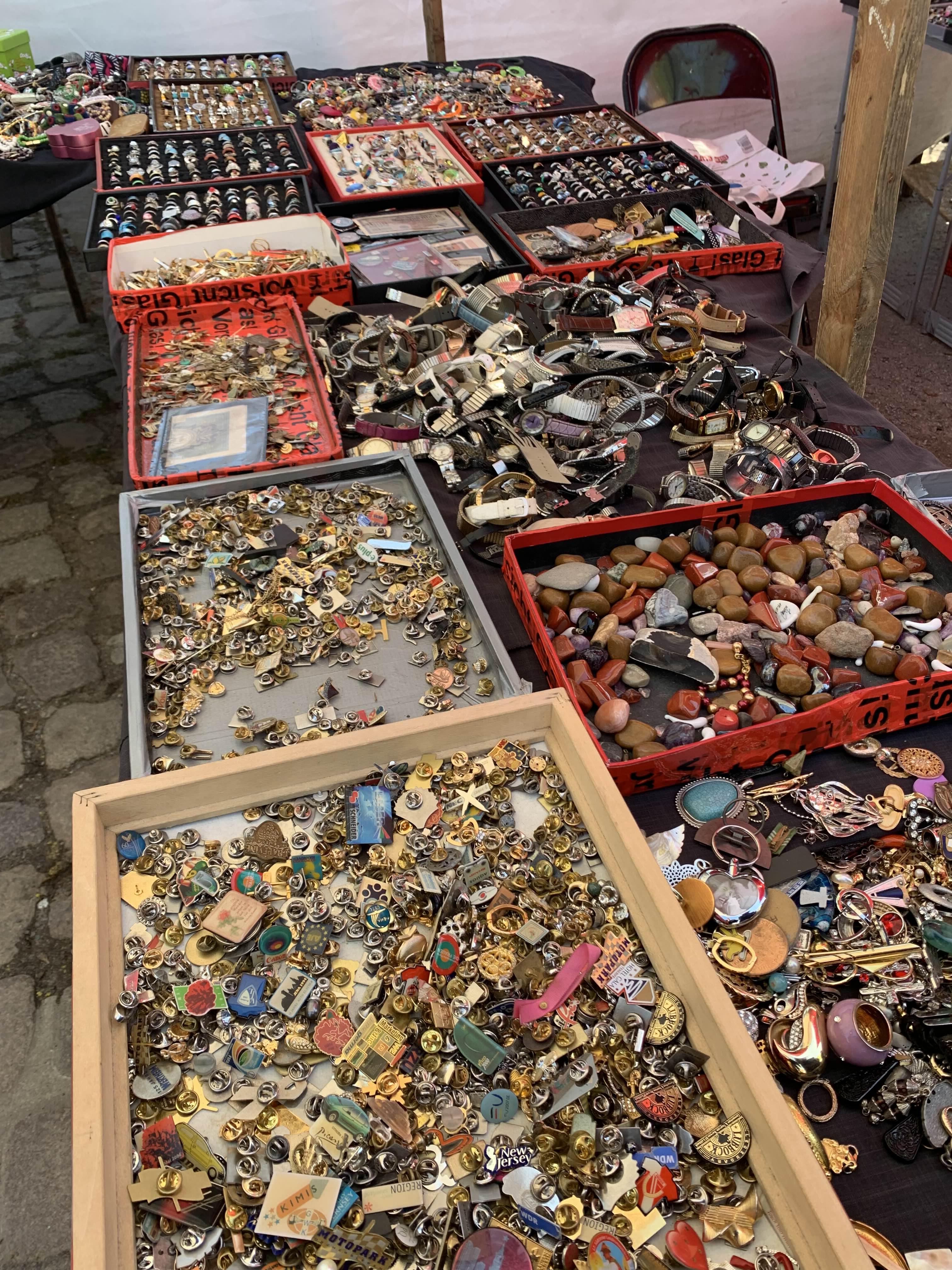 동묘느낌.. 상자들이나 그냥 테이블에 한가득씩 부어서 판매하는 제품들이 많았음.