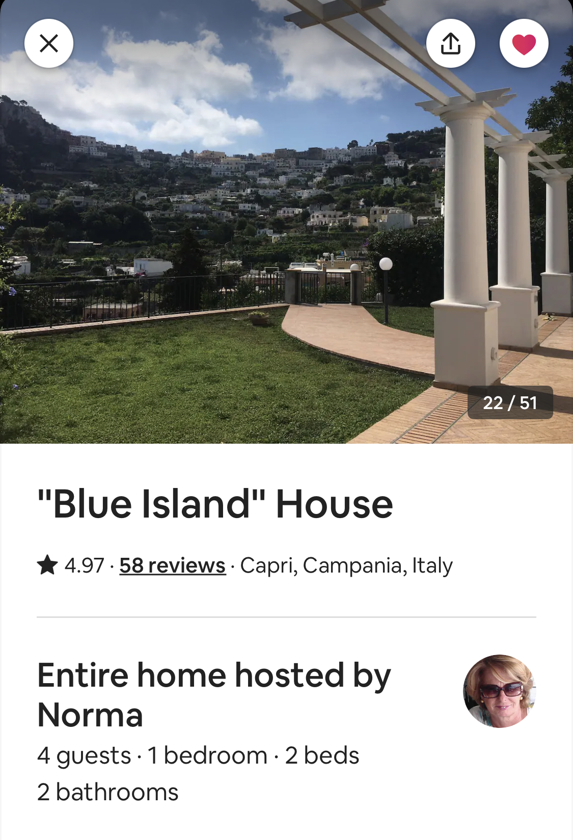 집 · Capri · ★4.97 · 침실 1개 · 침대 2개 · 욕실 2개