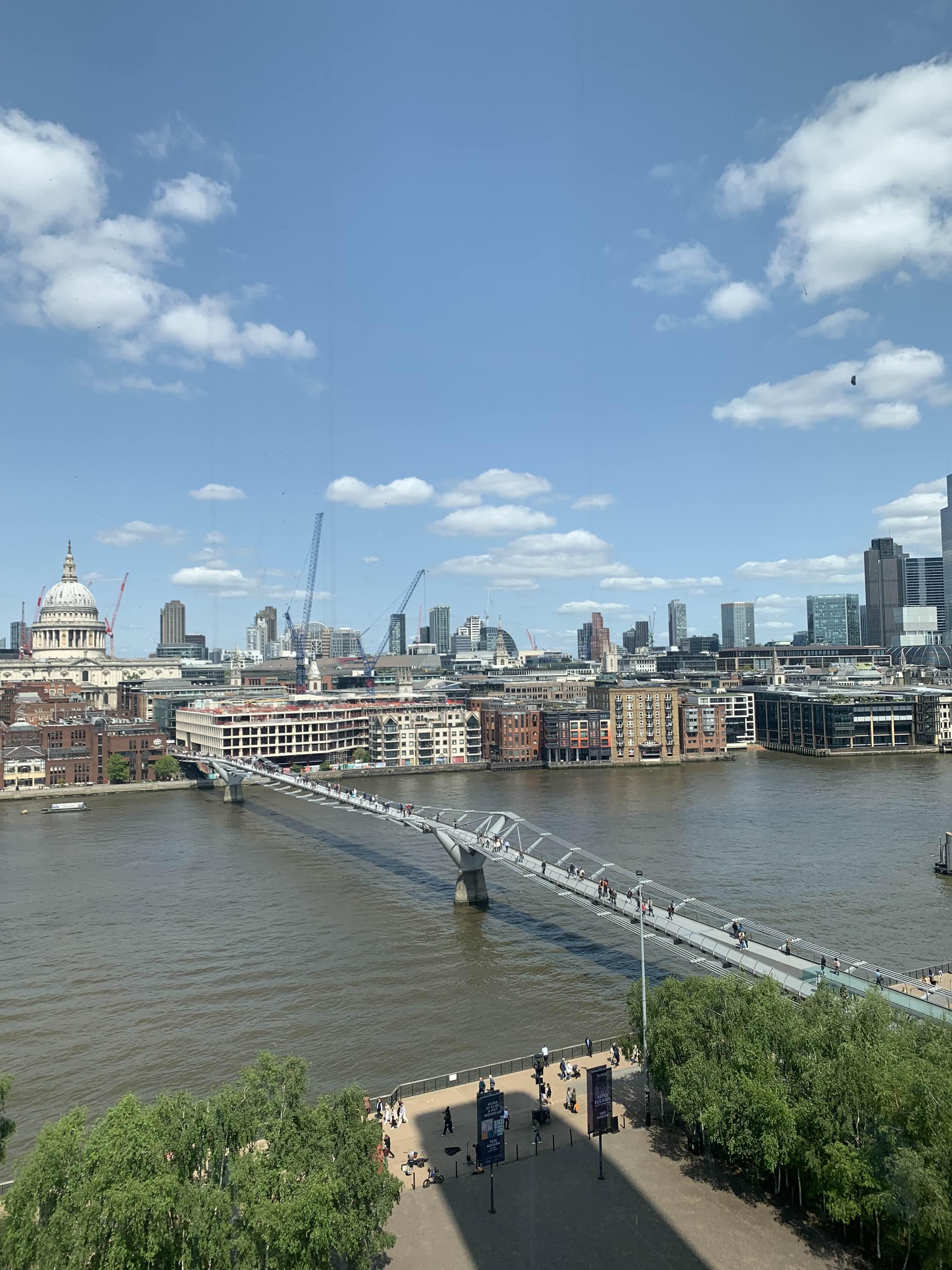 런던 테이트 모던 앞에 있는 다리는 "미레이디스 브릿지(Millennium Bridge)"입니다. 이 다리는 테임스 강을 가로지르는 도보 전용 다리로, 테이트 모던과 세인트 폴 대성당을 연결하는 역할을 합니다. 미레이디스 브릿지는 2000년에 개장되었으며, 현대적인 디자인과 특이한 곡선 모양으로 유명합니다. 이 다리를 걷는 동안에는 강을 건너는 동안의 경치와 런던의 도시 스카이라인을 즐길 수 있습니다.