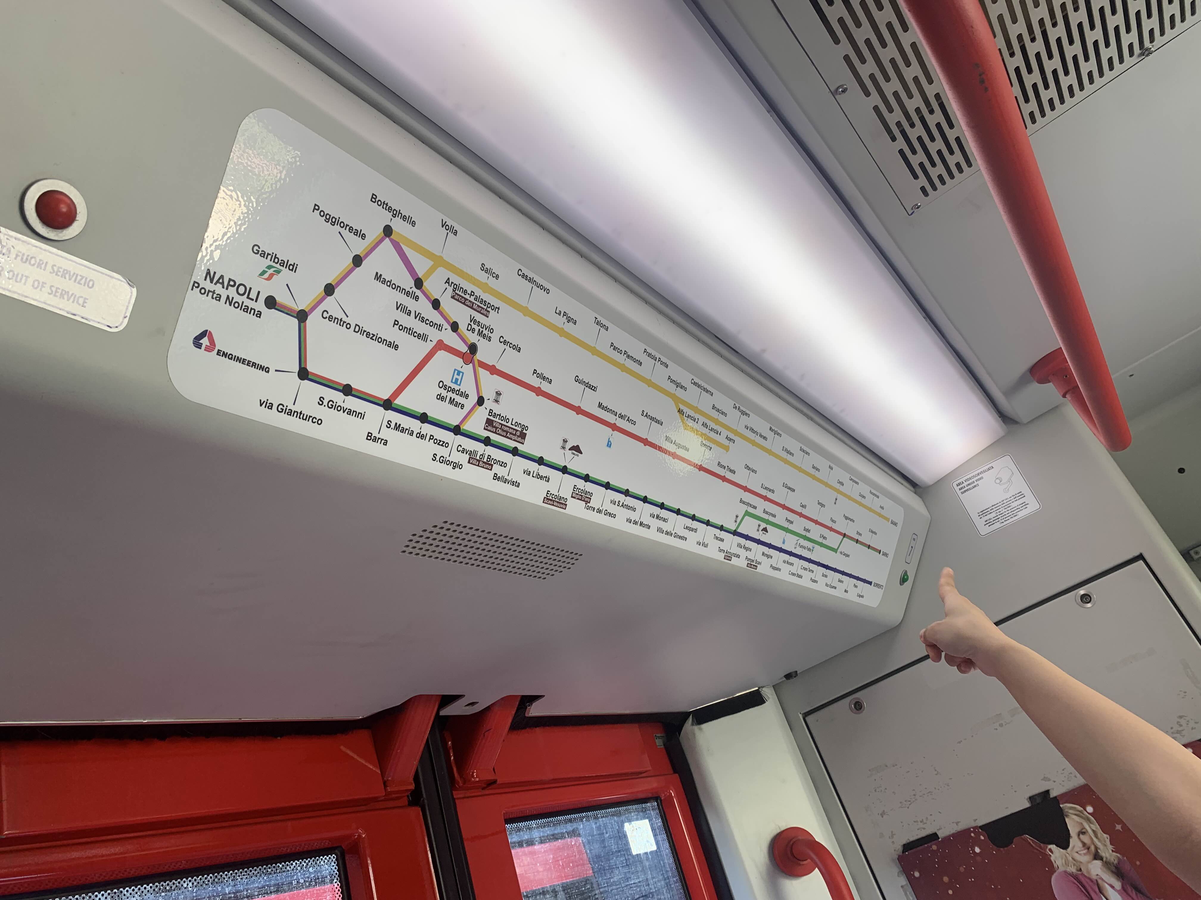 끝과 끝이 소렌토-나폴리 로 이어지는 기차에요