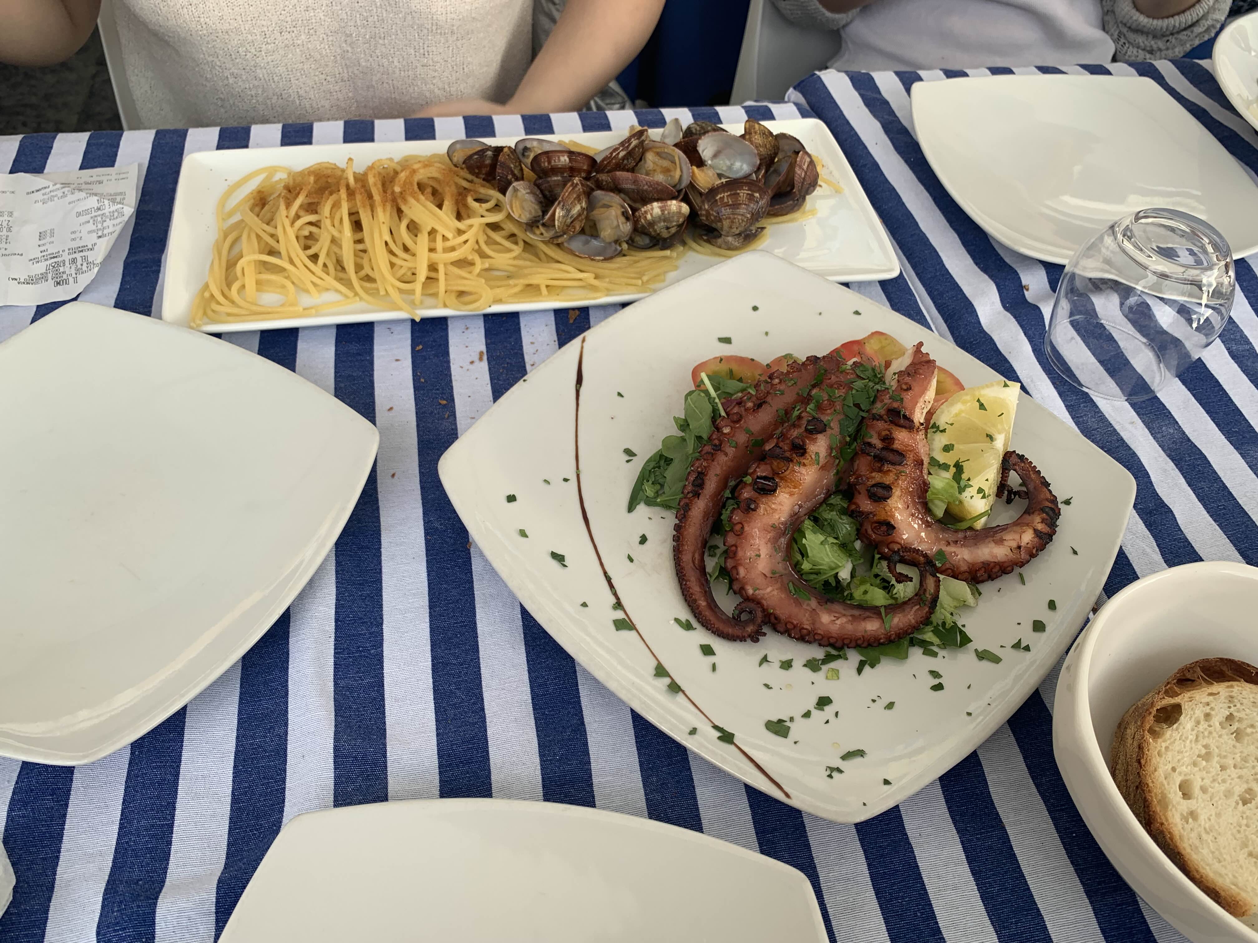 그릴 문어와 파스타 시켰습니다