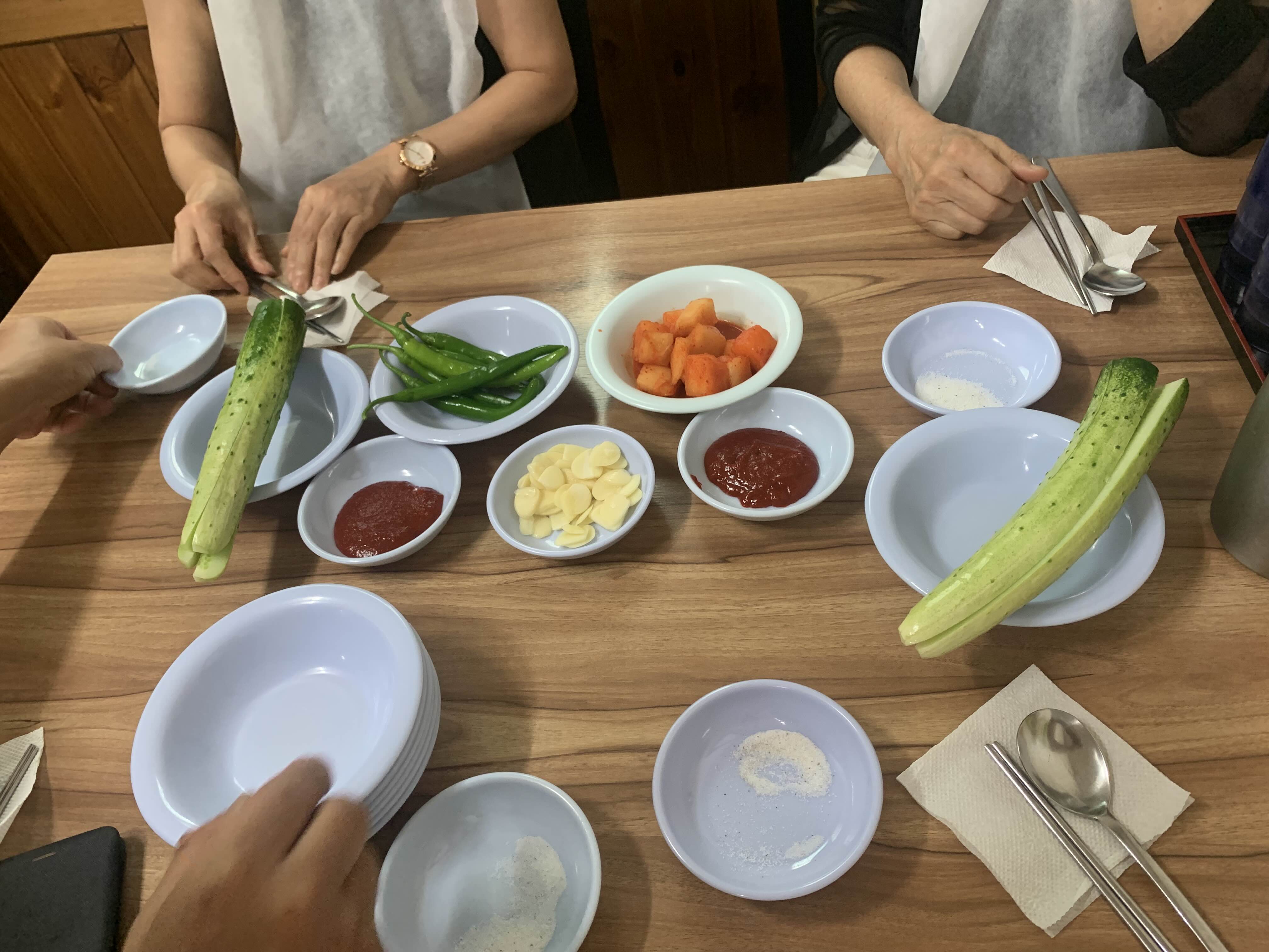 기본반찬은 깍두기,오이맛고추(가끔매운거섞여있음..),오이,마늘이구요