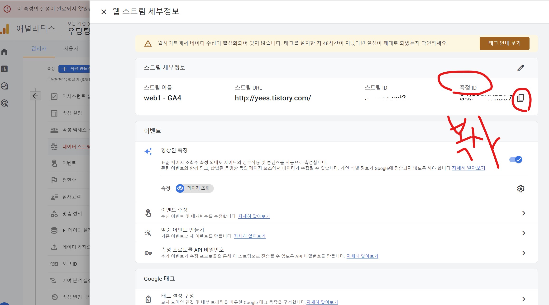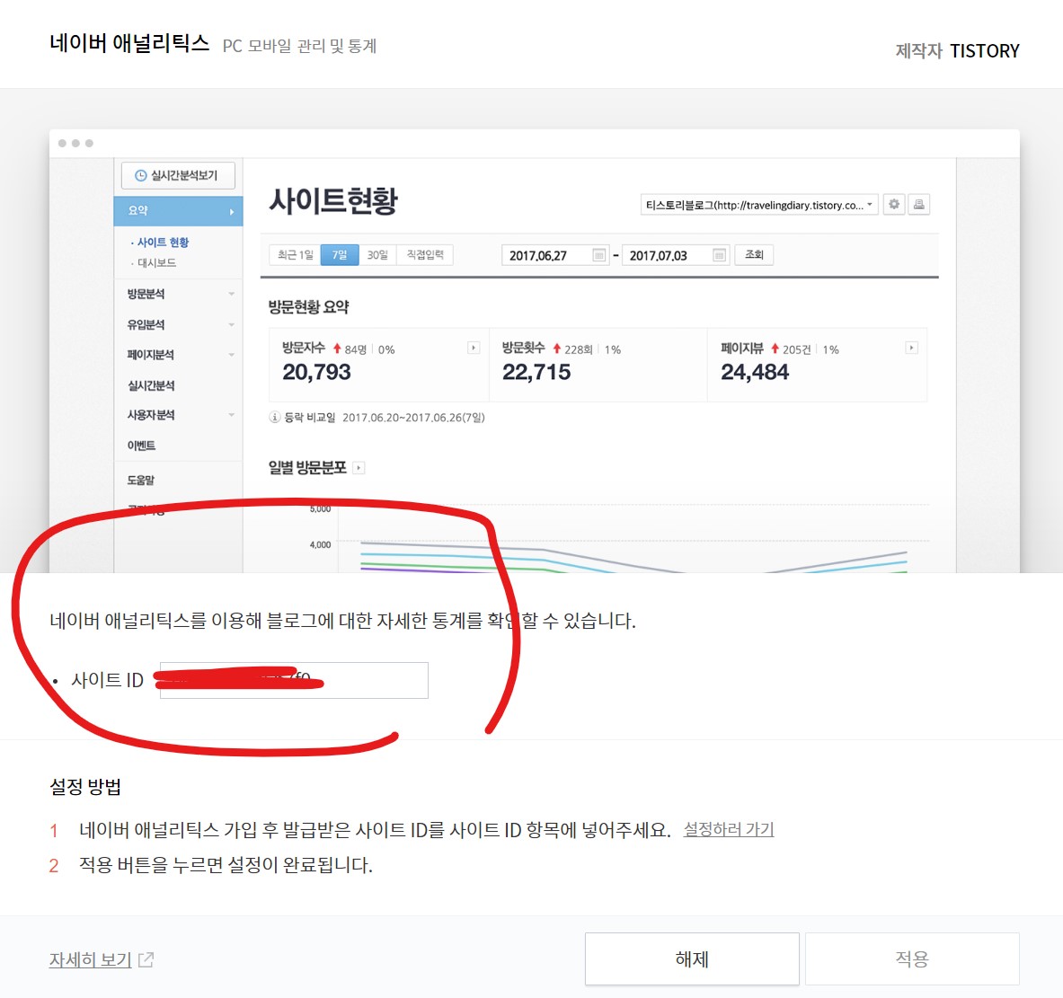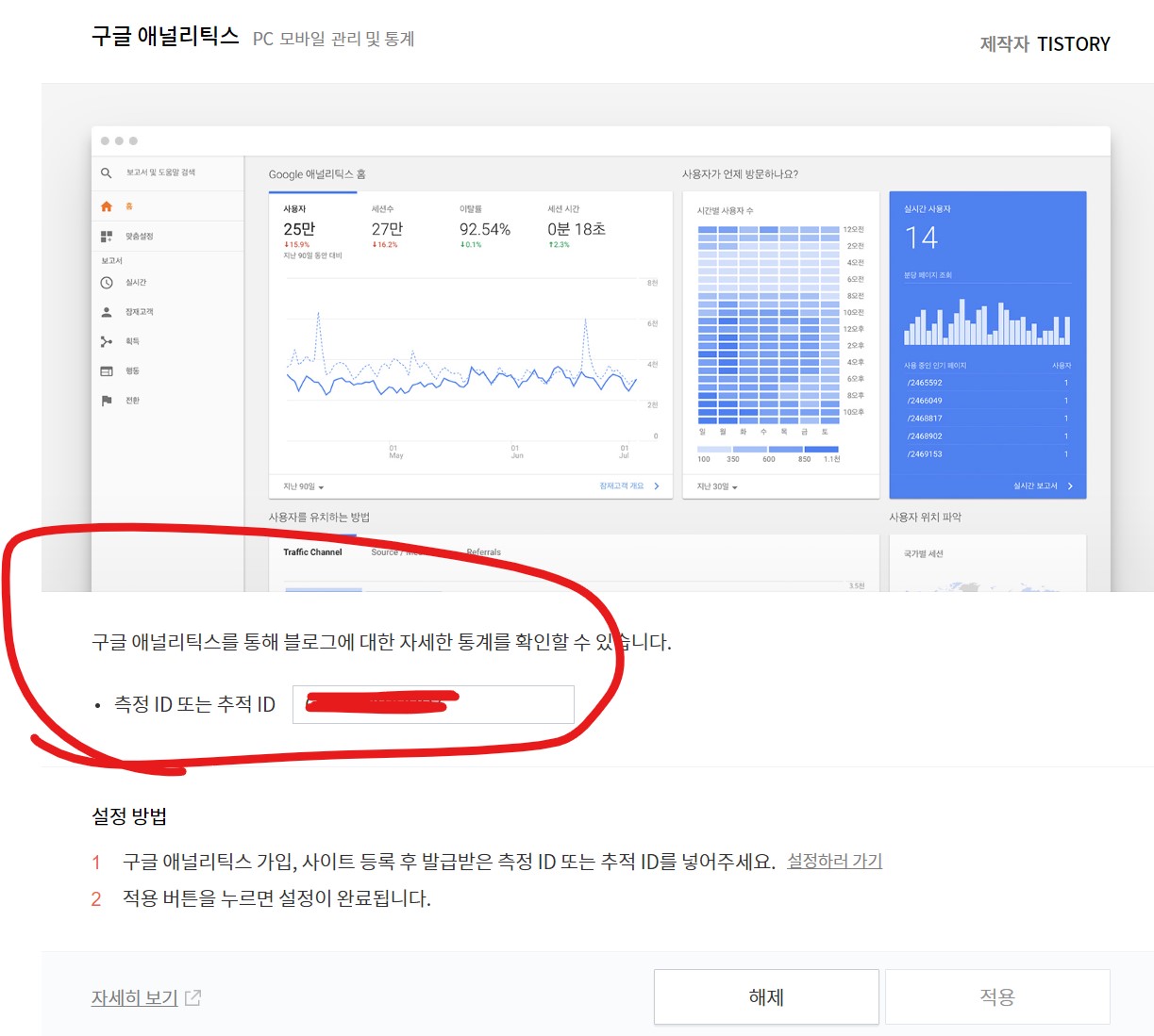측정 ID - 티스토리 플러그인 연동
