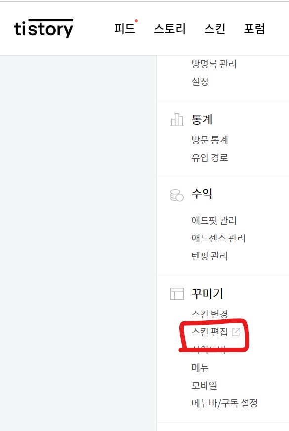 - 티스토리 관리 페이지 접속: 티스토리 관리 페이지에 로그인합니다.