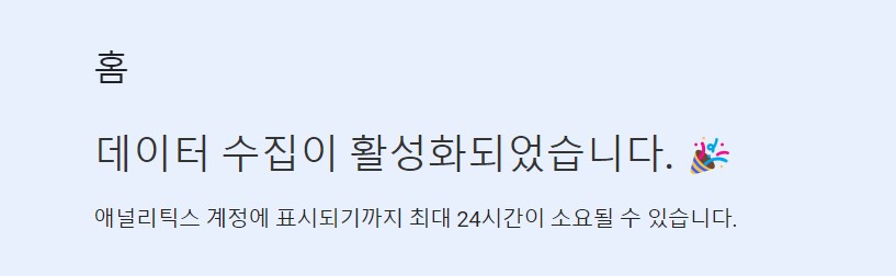 다시 구글 애널리틱스 메인 페이지로 오면 활성화 되었다고 뜹니다.