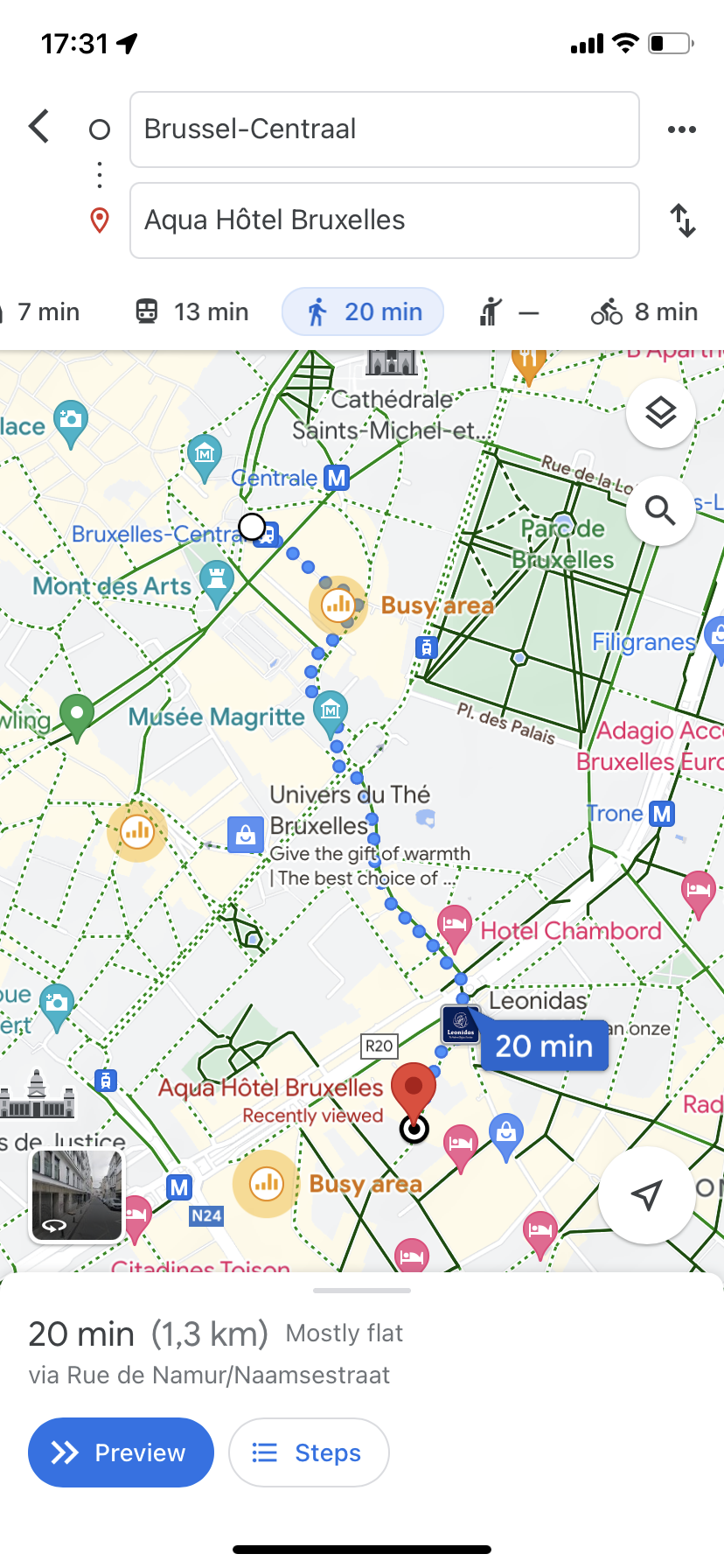 중앙역에서 도보 20분이다