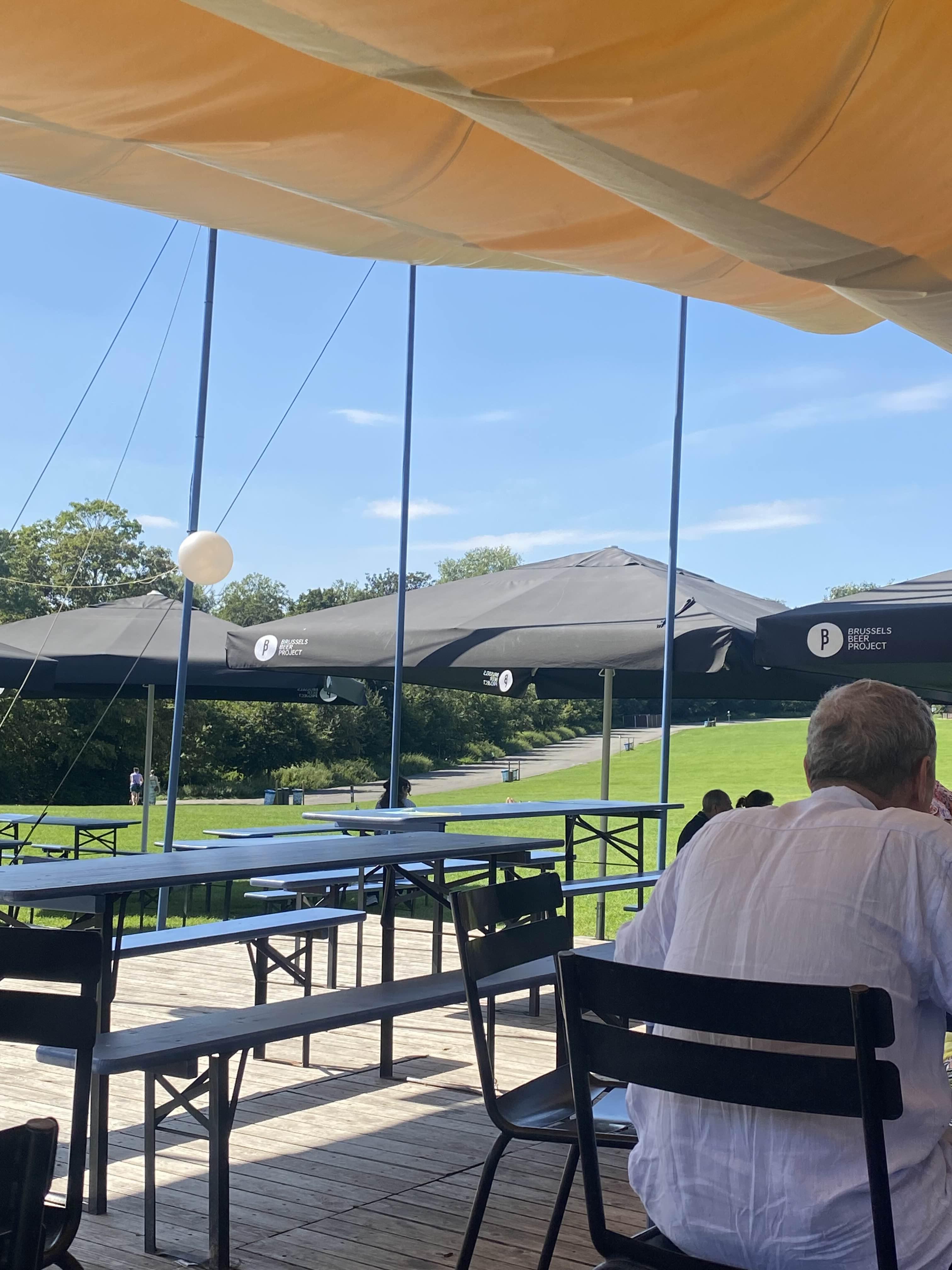 봄과 여름날에 완벽하며 방문하는 경우 Atomium과 가깝고 좋은 휴식, 스낵 및 음료에 이상적입니다. 그들은 좋은 맥주 선택을했습니다. 아이들이 쉽게 놀 수 있고 누구나 낮잠을 잘 수 있는 탁 트인 들판의 윗부분에 자리 잡고 있습니다. 우리는 hummus와 혼합 소시지 ans 치즈 플레이트를 즐겼습니다. 매우 친절한 직원.