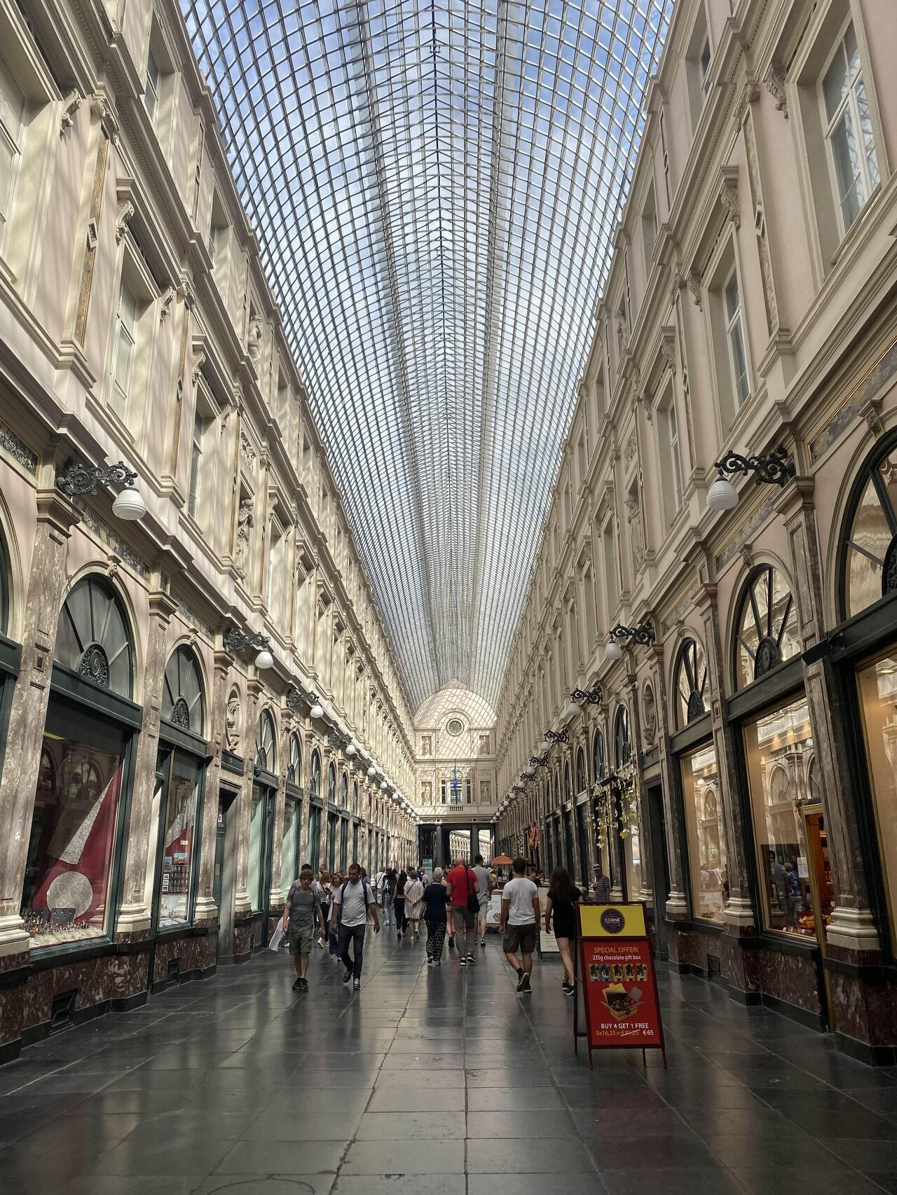 벨기에 브뤼셀의 중심에 위치한 유명하고 역사적인 쇼핑 아케이드로, 프랑스어로는 "Galerie Royale Saint-Hubert"로 불립니다. 이것은 덮인 쇼핑 몰의 초기 예시 중 하나로, 건축적 아름다움과 우아함으로 유명합니다.