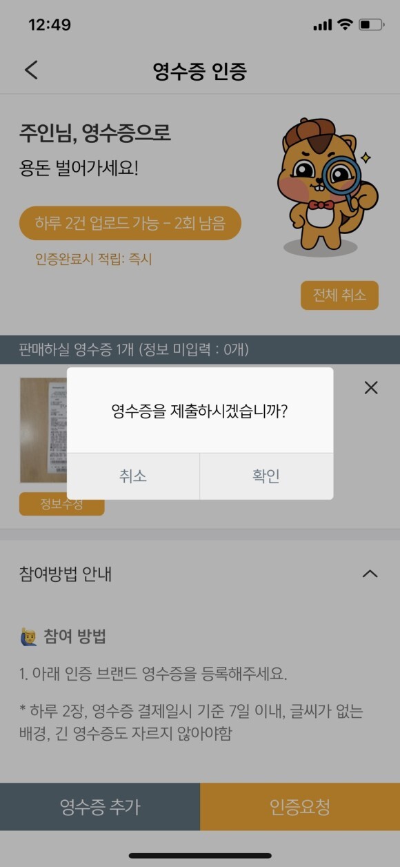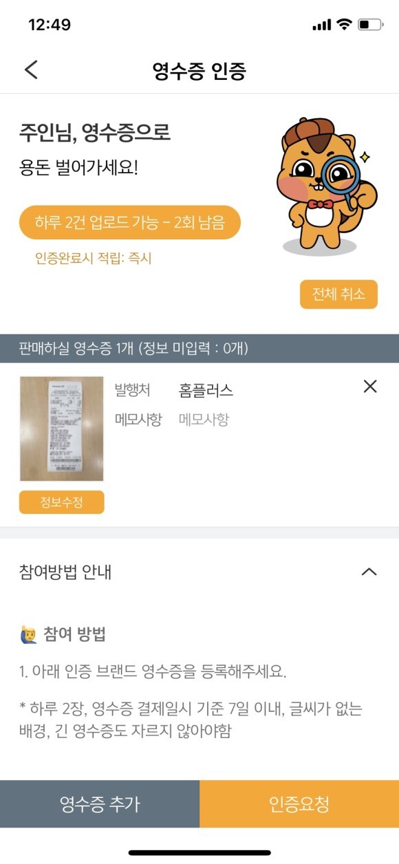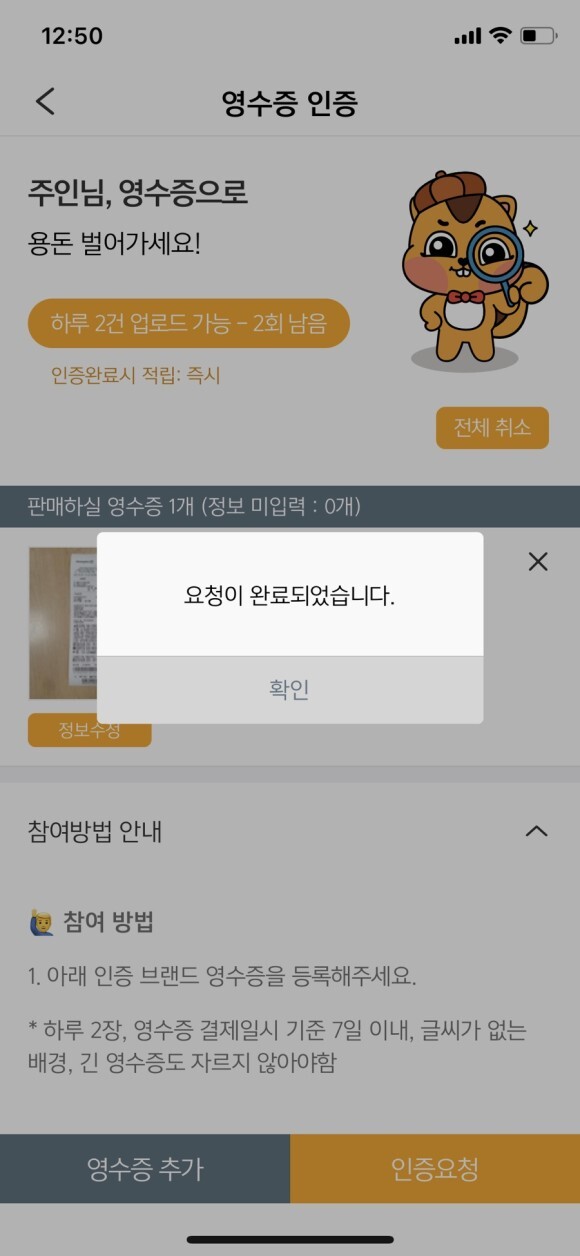 (하지만 하루 영수증 제출 2건만 가능 ㅠㅠ)