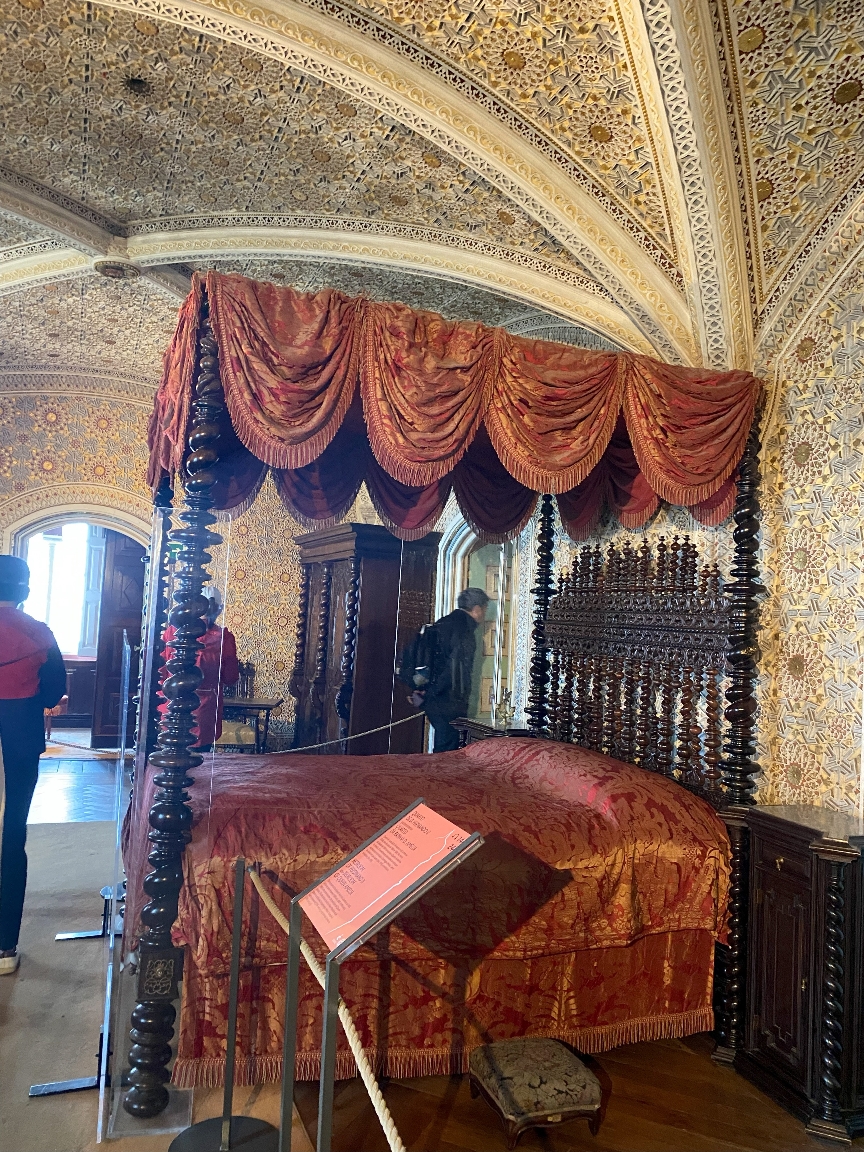 1882년 도밍고스 메이라(Domingos Meira)가 제작한 네오-무어식 패턴으로 칠해진 치장벽토 장식은 포르투갈 문화의 이슬람 유산에서 영감을 받은 페르난디노의 이국적인 취향을 반영합니다.