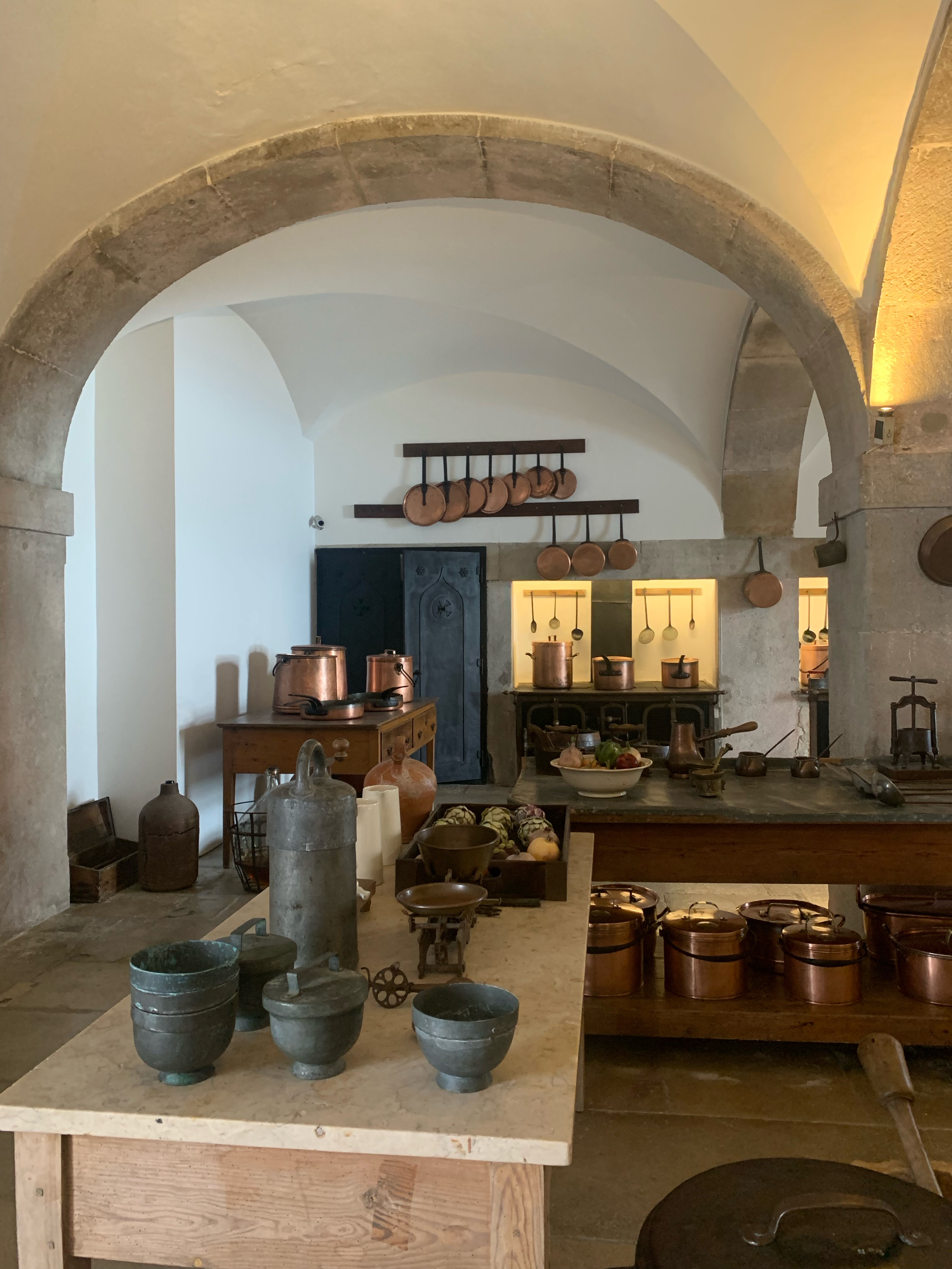 신트라 궁전의 기념비적인 부엌은 D. João I이 궁전 전체를 섬기기 위해 건설했습니다. 그 규모는 법원을 구성한 수백 명의 사람들에 의해 정당화됩니다. 신트라는 왕실 사냥터였기 때문에 연회를 위해 사냥감을 준비하던 곳이었다. 33미터 높이의 두 굴뚝의 상징적인 볼륨은 신트라의 상징이 되었습니다.