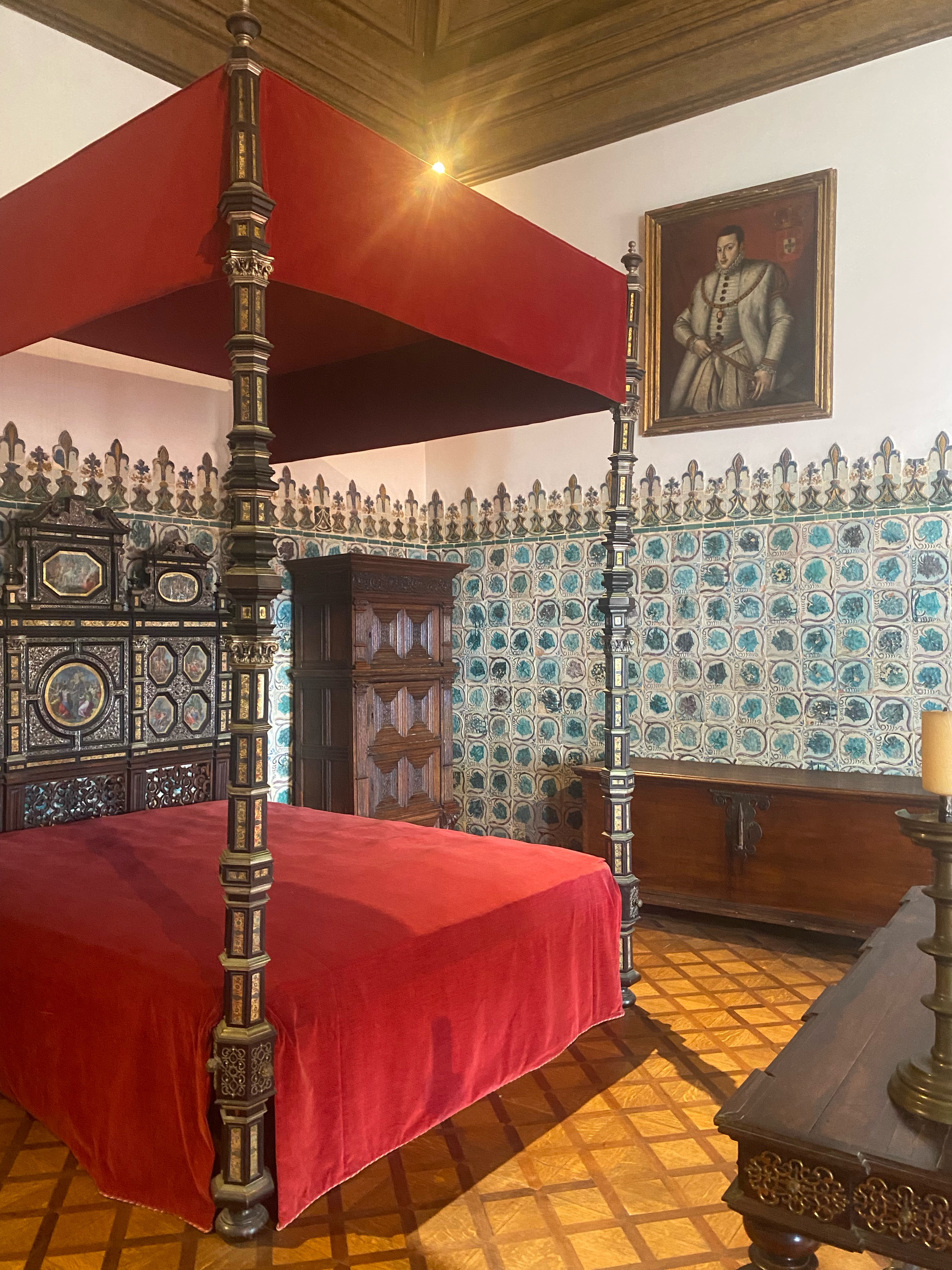 손자 세대는 더 보수적이어서 별도의 방을 선택했습니다. D. Carlos 왕은 이 방을 D. Amélia에게 맡기고 회랑 아래층에 있는 이전 하인의 방을 차지했습니다.