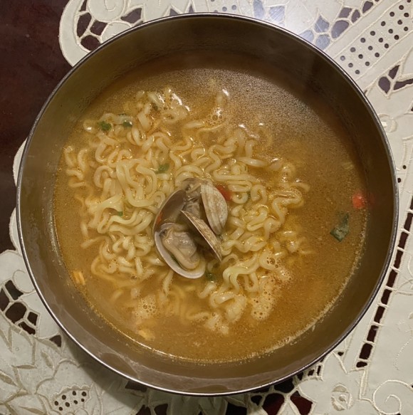 이젠 두부도들어있고 바지락까지 라면에...