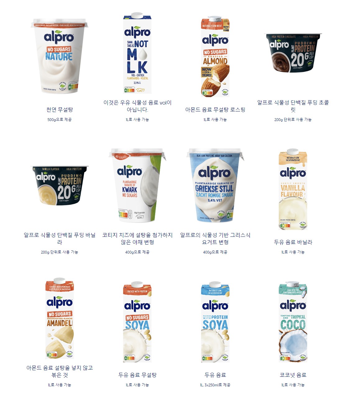 알프로 제품은 각각의 제품군에서도 다양한 맛과 옵션을 제공하고 있으며, 건강하고 영양가 높은 식물성 재료를 사용하여 만들어졌습니다.