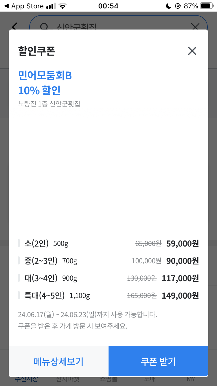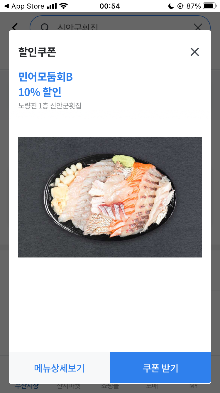 2.신안군횟집 검색후 할인쿠폰 받기
