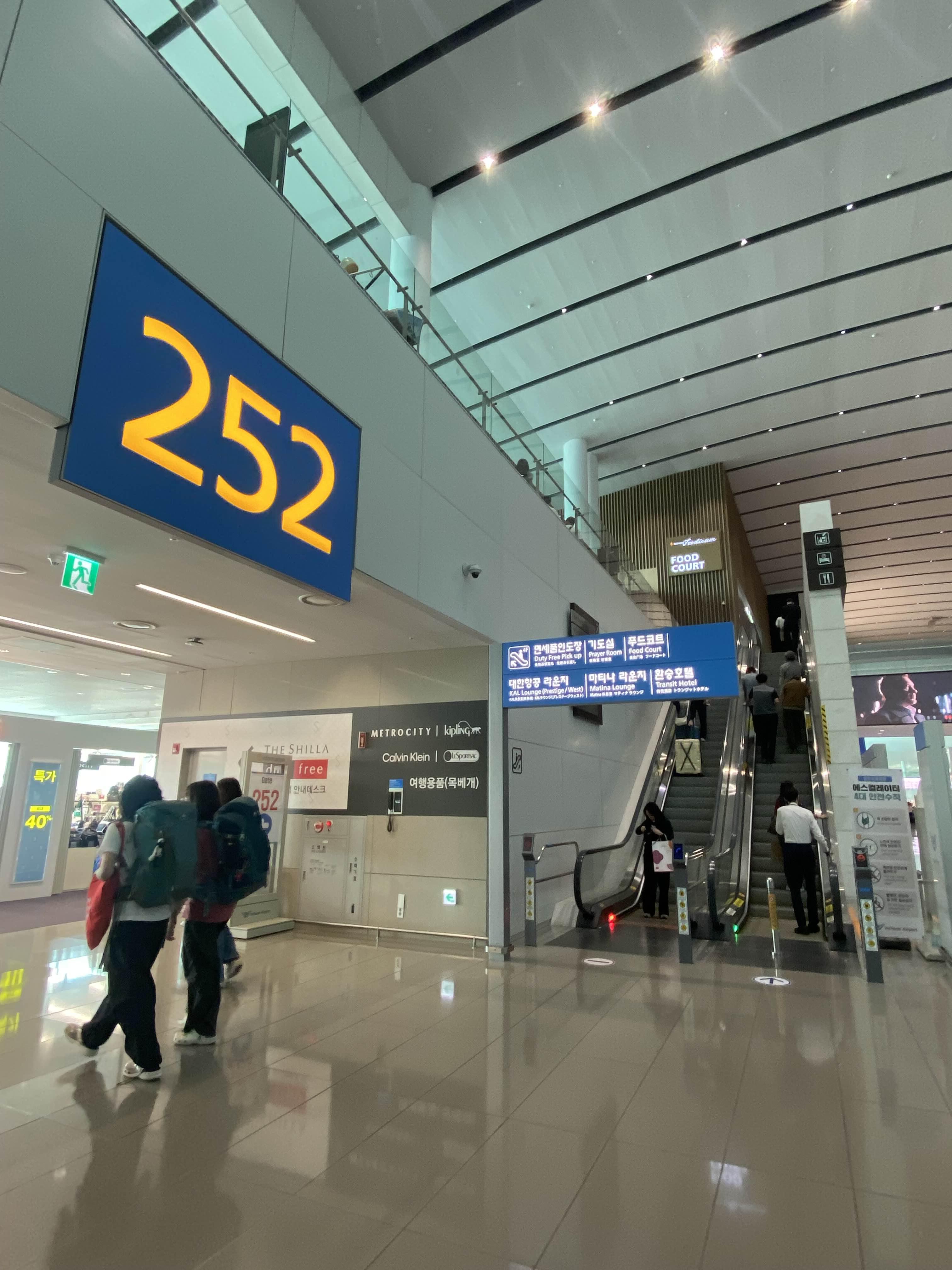 면세점 인도장의 위치는 252 게이트를 가서 에스컬레이터를 타고 올라가면된다.
