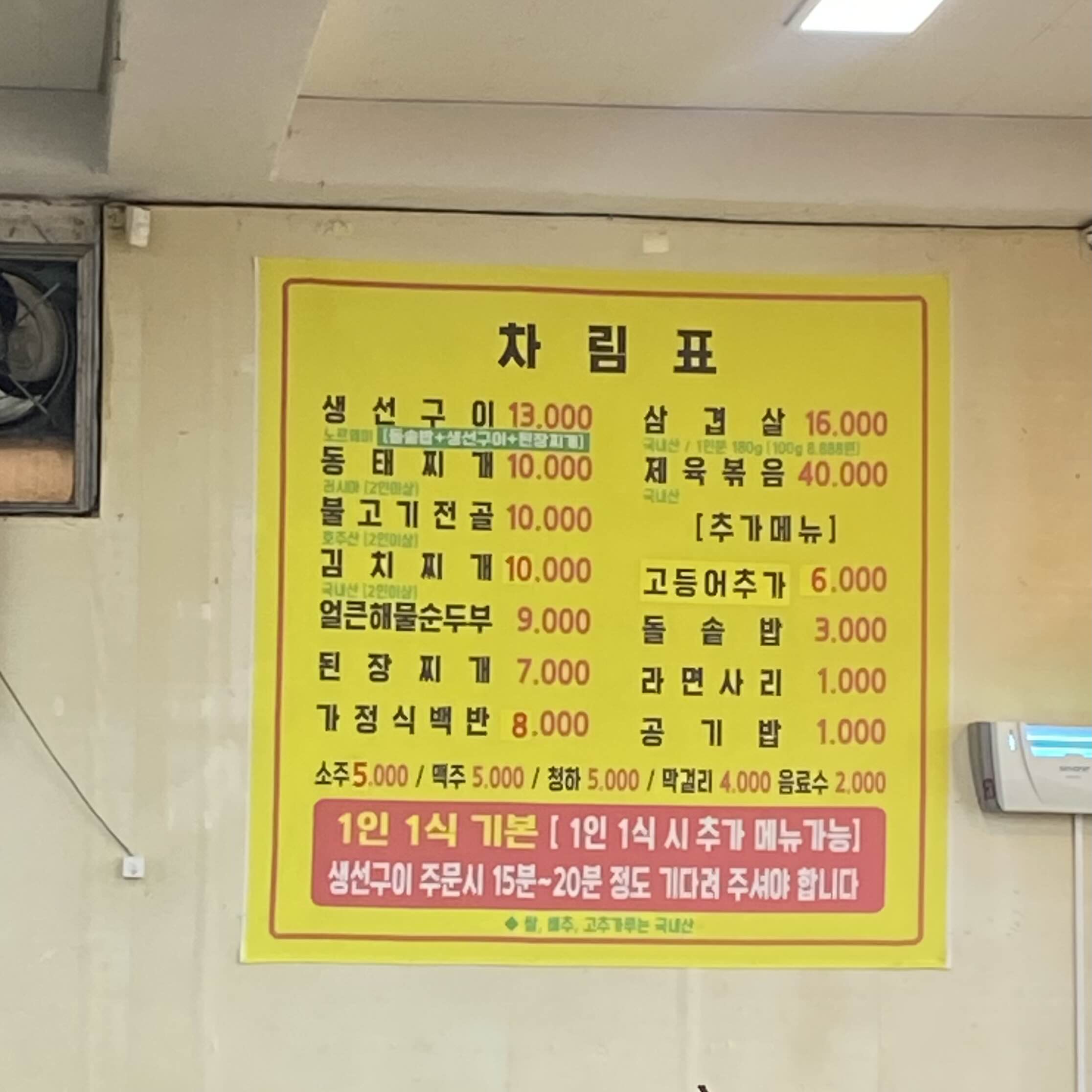요새 동태찌개 하는곳도 별로 없고 비싼데