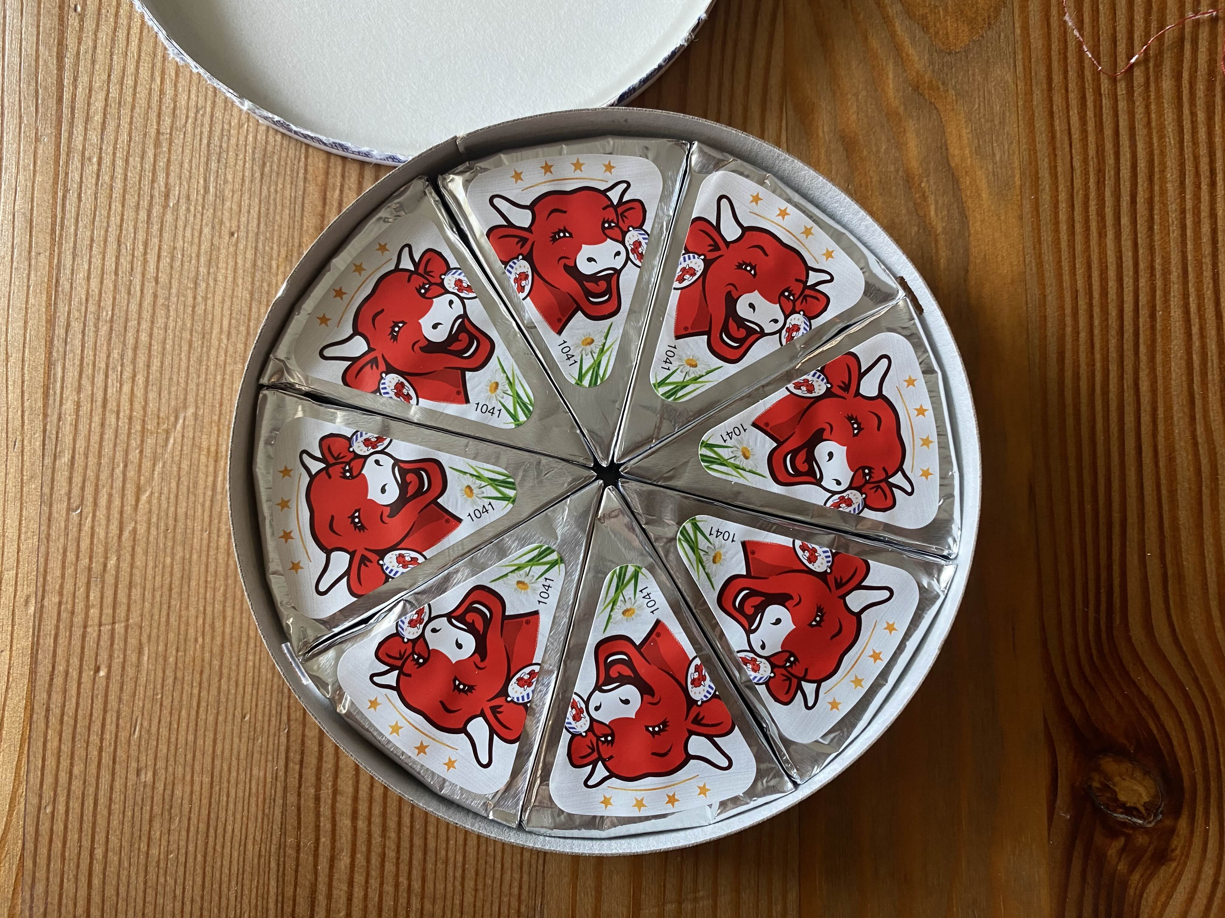 래핑카우(The Laughing Cow)는 프랑스의 유명한 치즈 브랜드입니다. 이 브랜드는 1921년에 처음 출시되었으며, 주로 크리미하고 부드러운 스프레드 치즈를 생산합니다. 래핑카우 치즈는 개별 포장된 삼각형 모양으로 잘 알려져 있으며, 간편하게 즐길 수 있어 많은 사람들에게 인기가 있습니다. 치즈의 포장은 종종 빨간색 배경에 웃고 있는 암소 그림이 그려져 있어 쉽게 알아볼 수 있습니다.