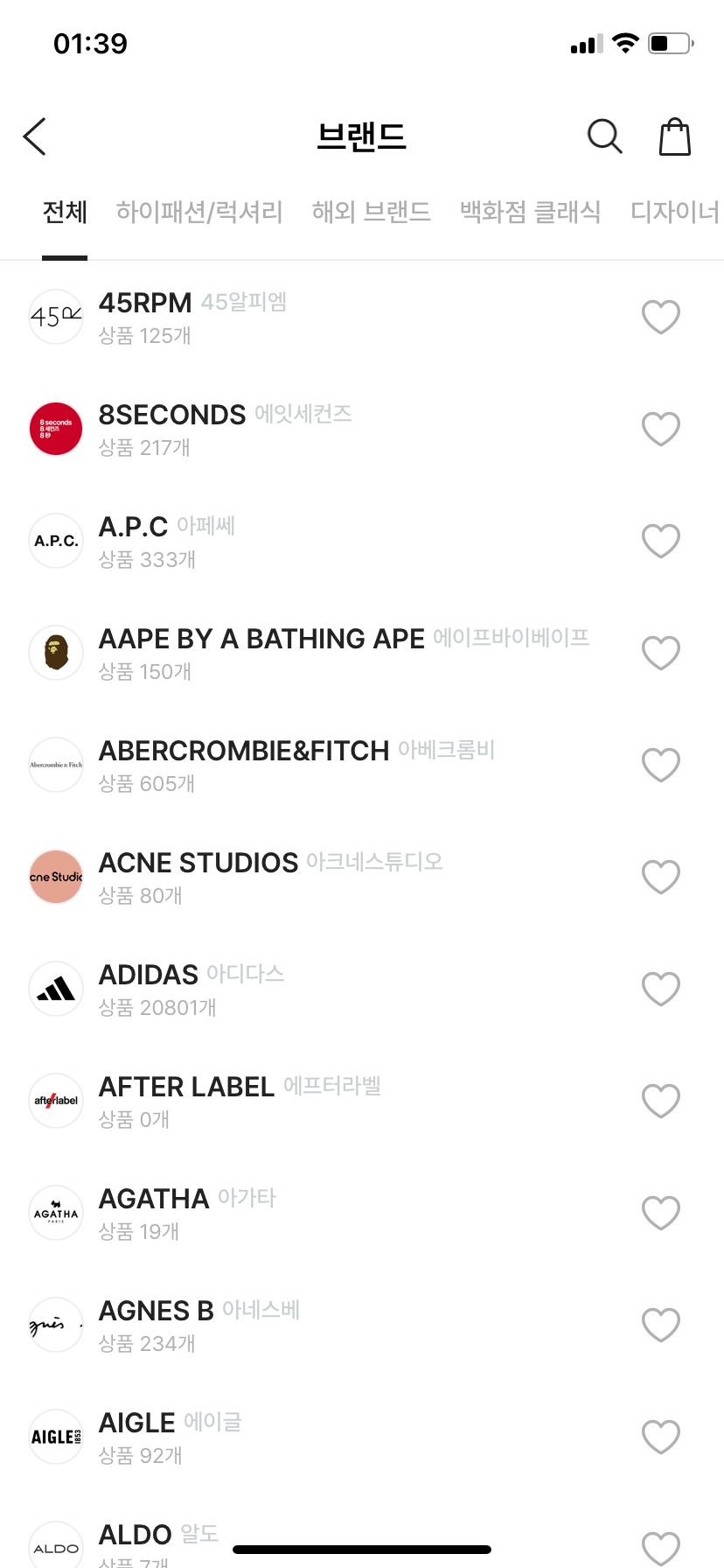브랜드도 굉장히 많고 일단 잘~정렬이 되어있다는 점이 이 어플의 가장 큰 장점인것같다.