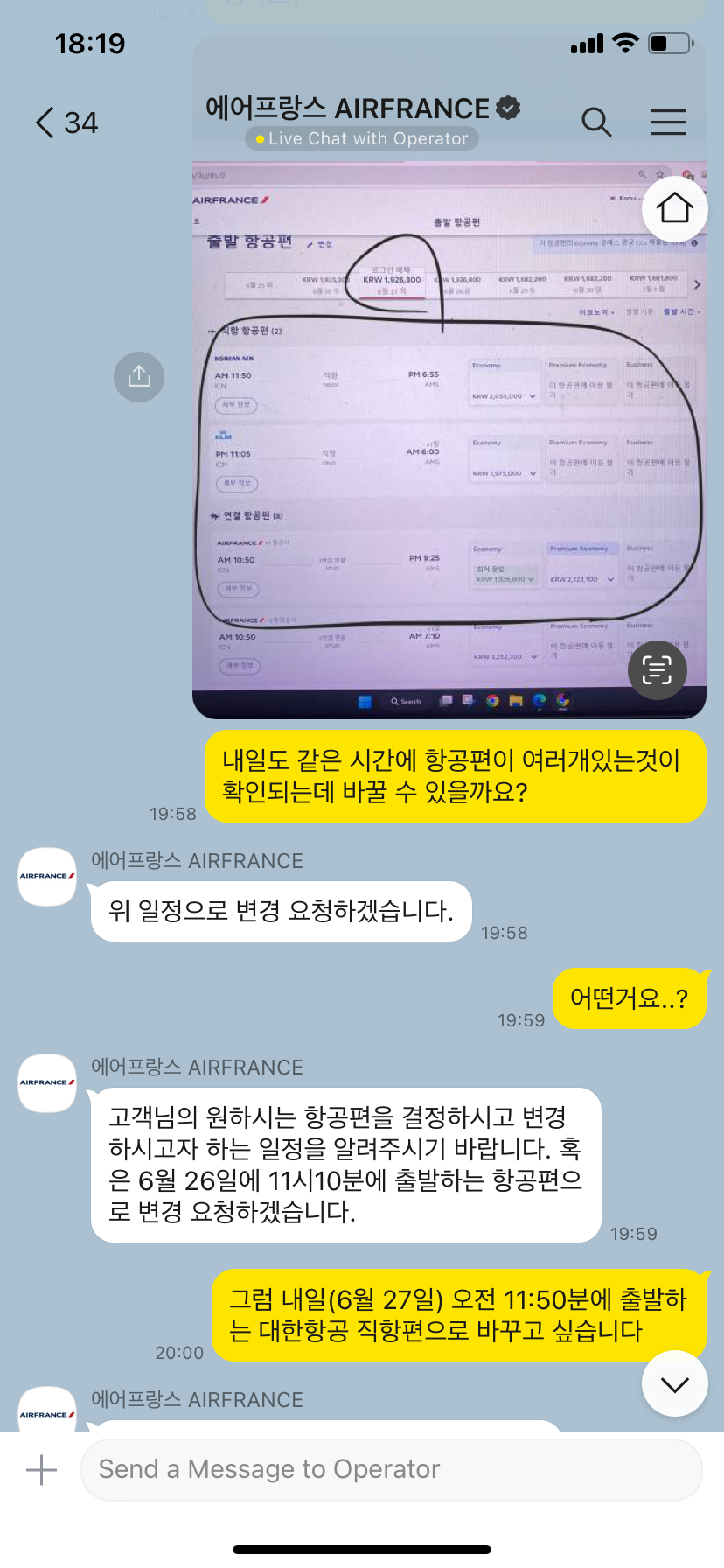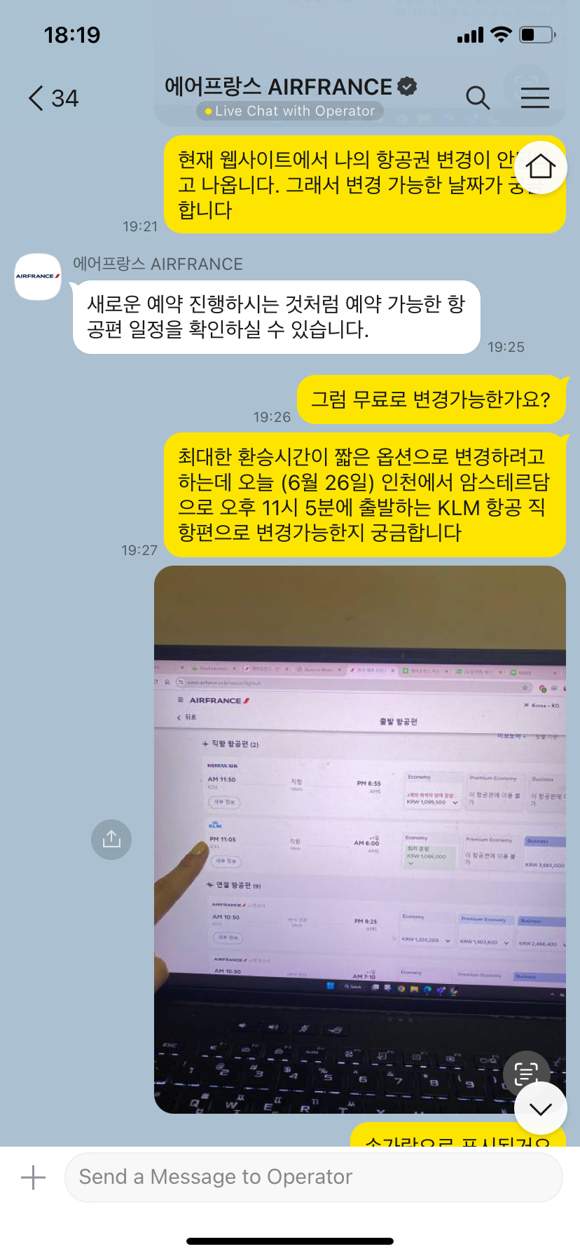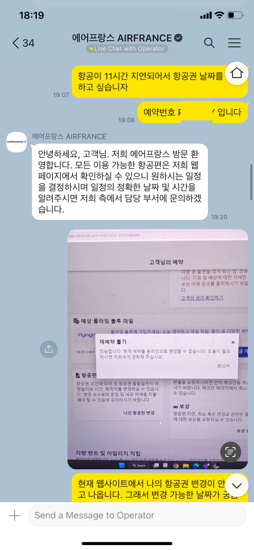 아무튼 나는 10시간이상 기다리기 싫어서 에어프랑스에 카카오톡으로 문의를 했고