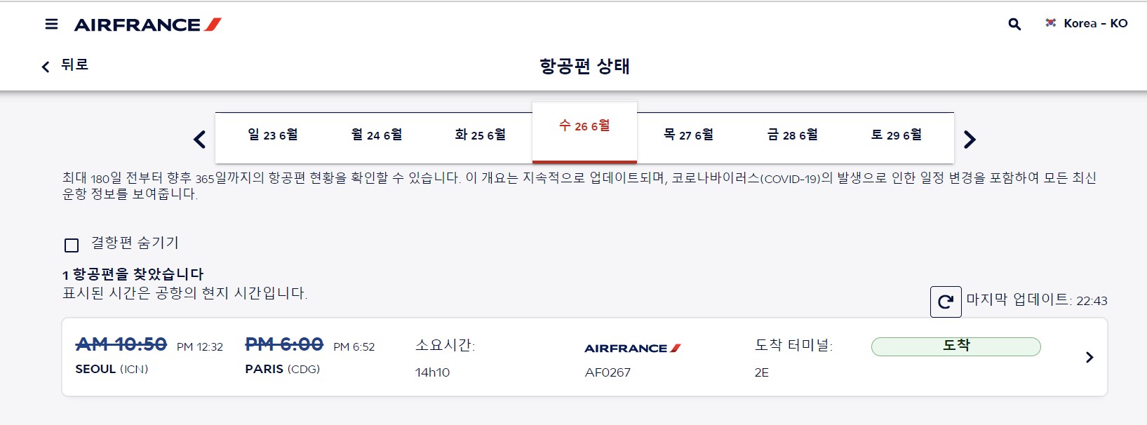 3.항공편 상태 페이지로 이동 클릭