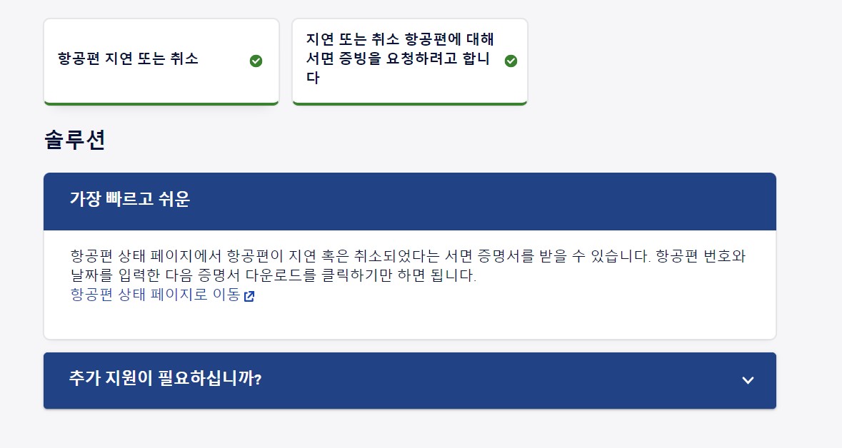 2.지연 또는 취소 항공편에 대해 서면 증빙을 요청하려고 합니다. 클릭