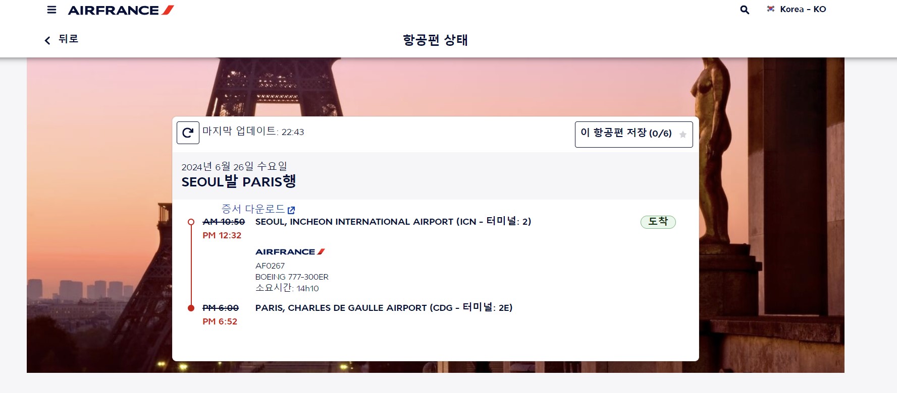 문제는 '서울-파리' : 2시간지연