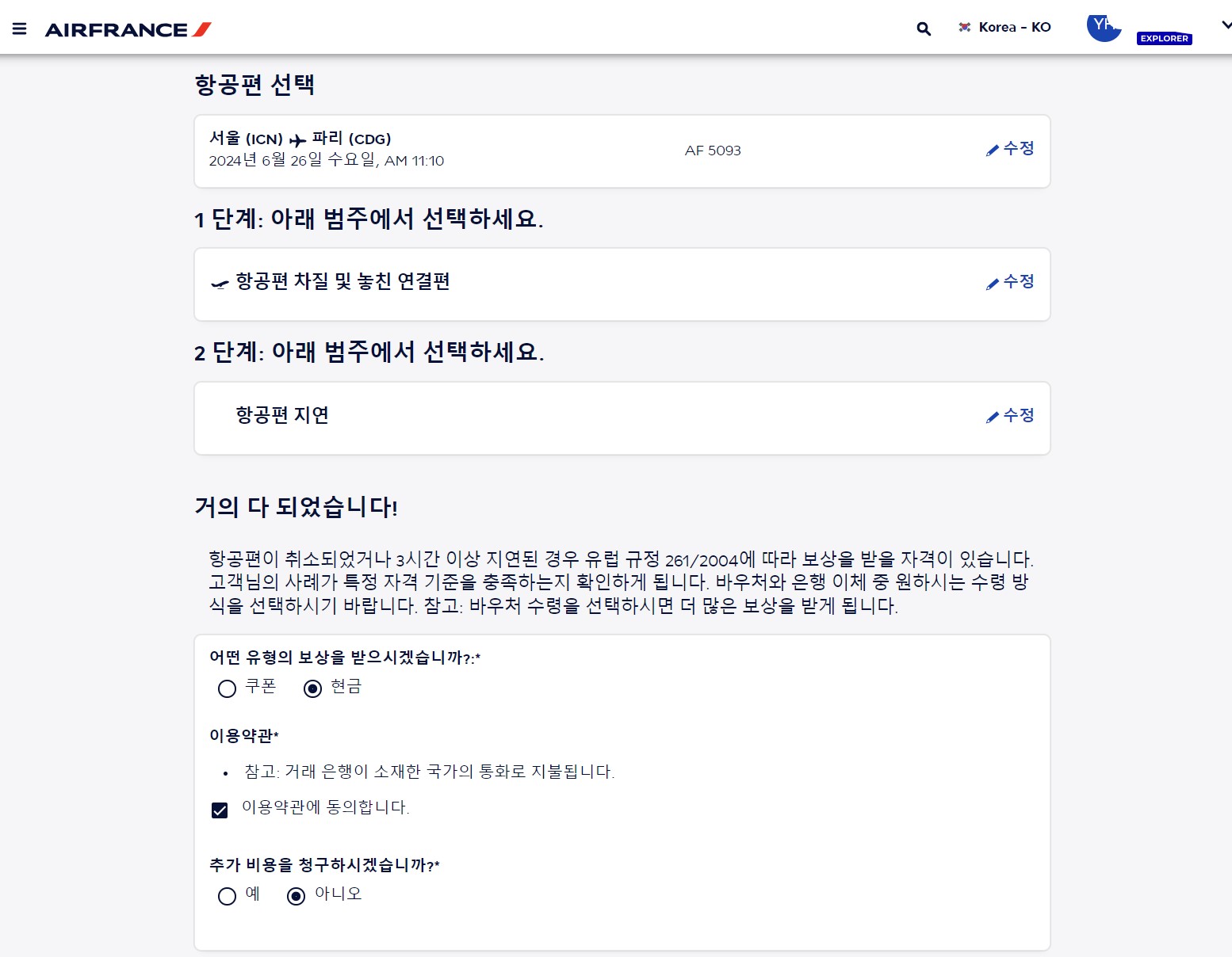 2.에어프랑스 지연/취소 보상 후기 및 신청방법