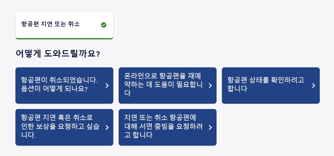 '항공편 지연 혹은 취소로 인한 보상을 요청하고 싶습니다.'