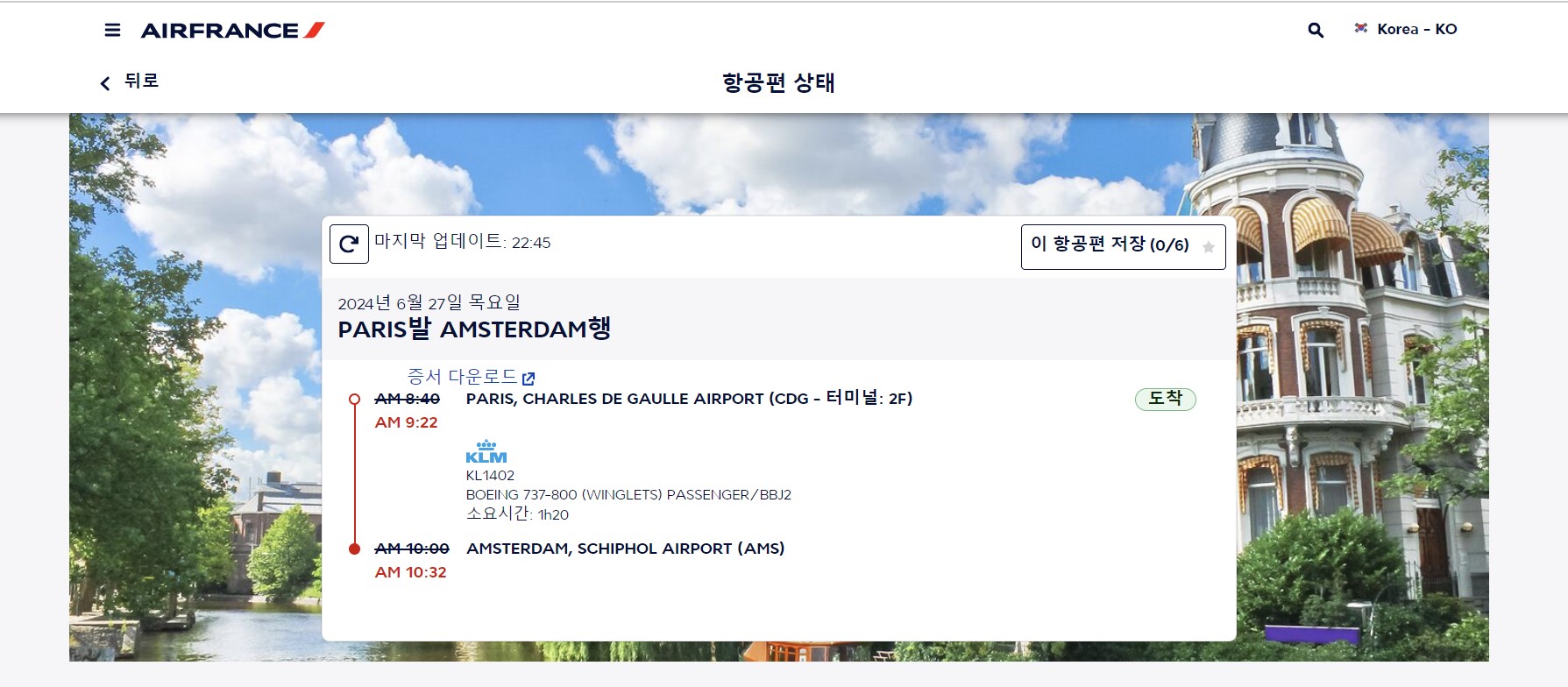 으로 인해서 '파리-암스테르담' 연결편을 놓치고