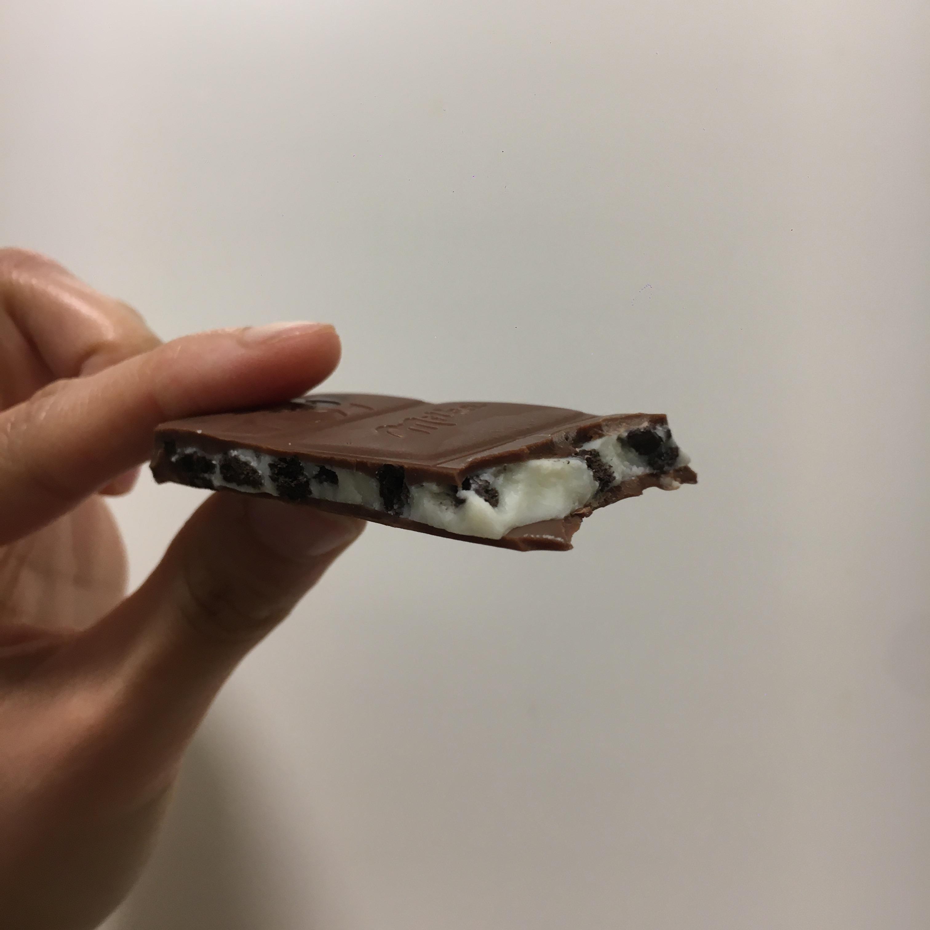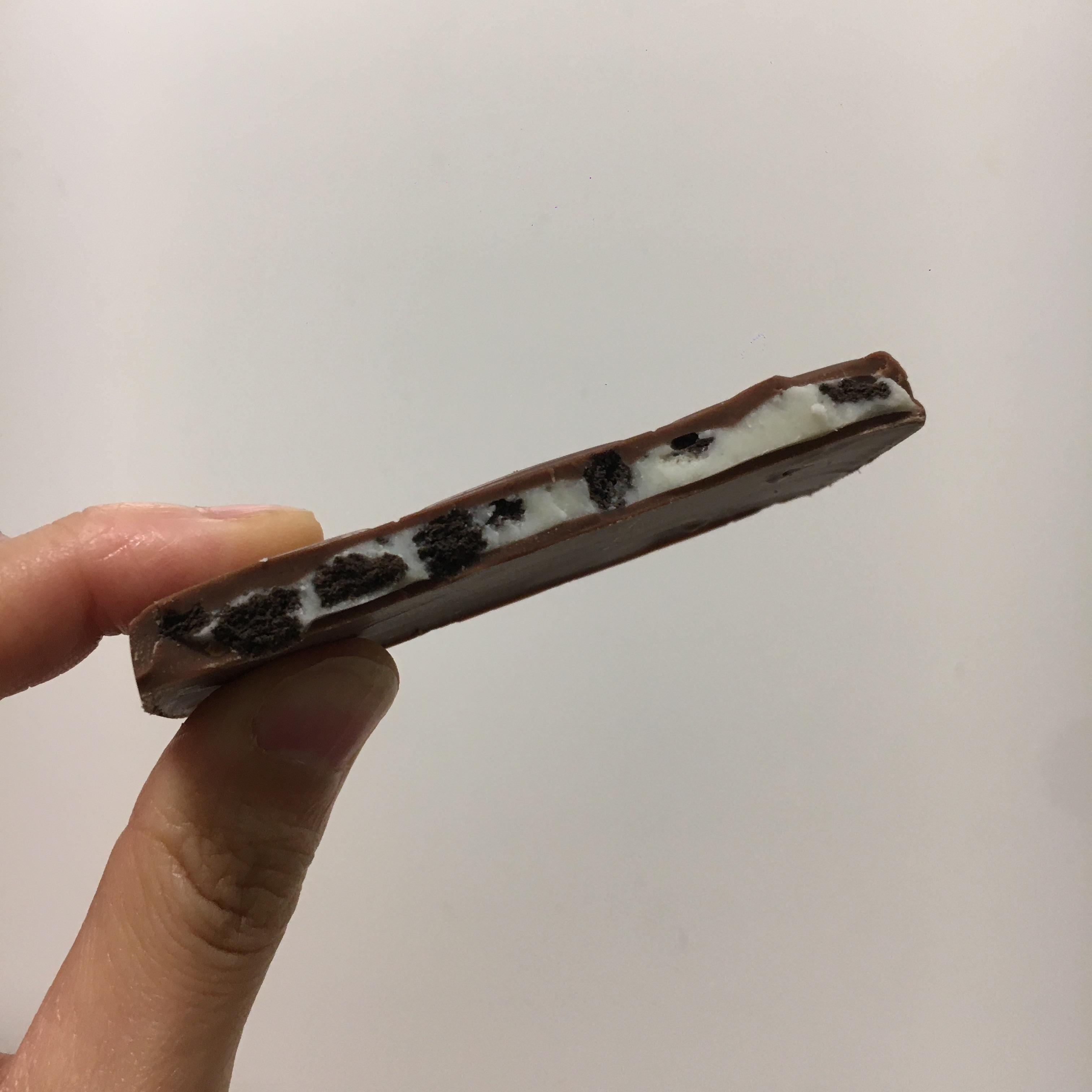 - 크리미한 밀크 초콜릿에 오레오 비스킷 조각이 들어간 제품