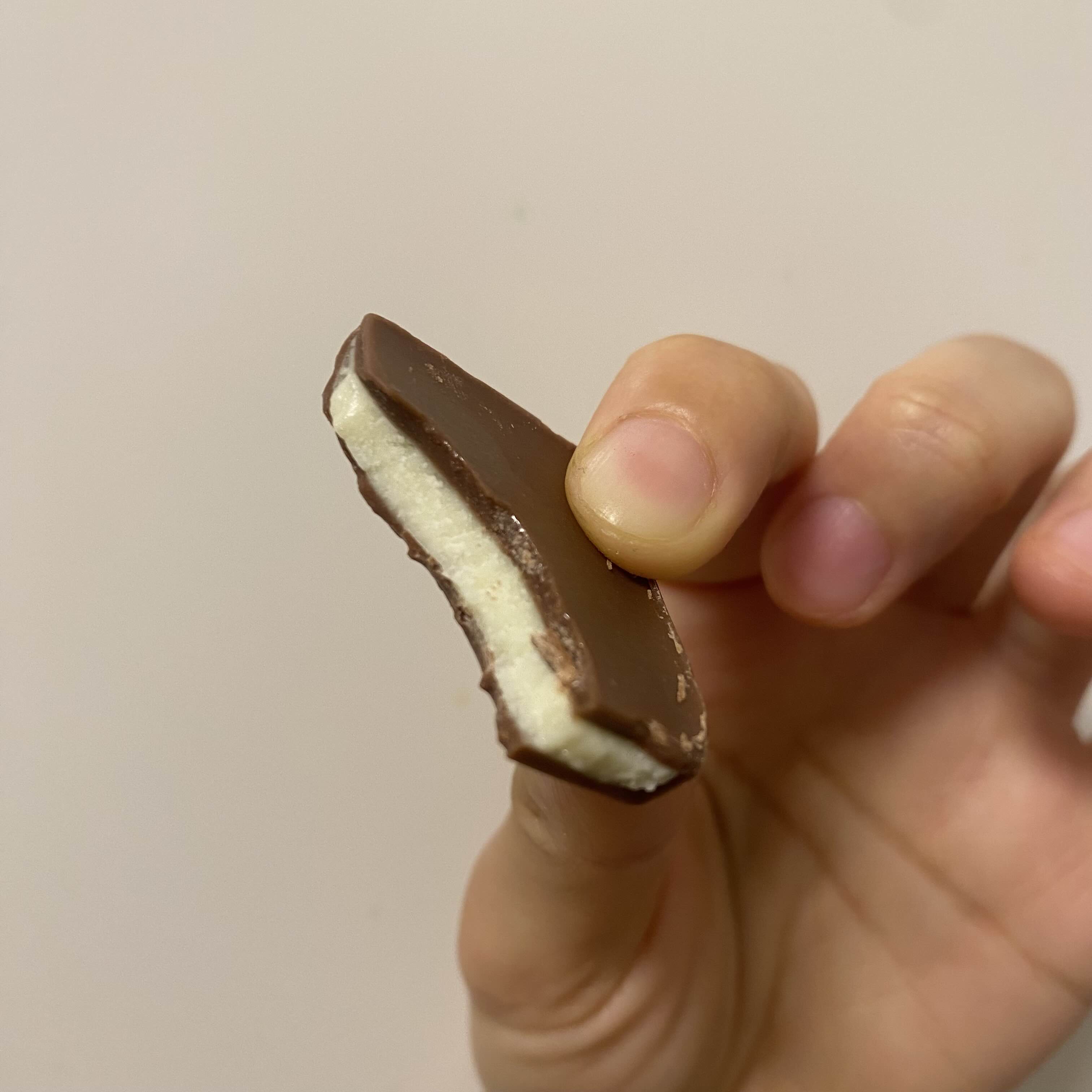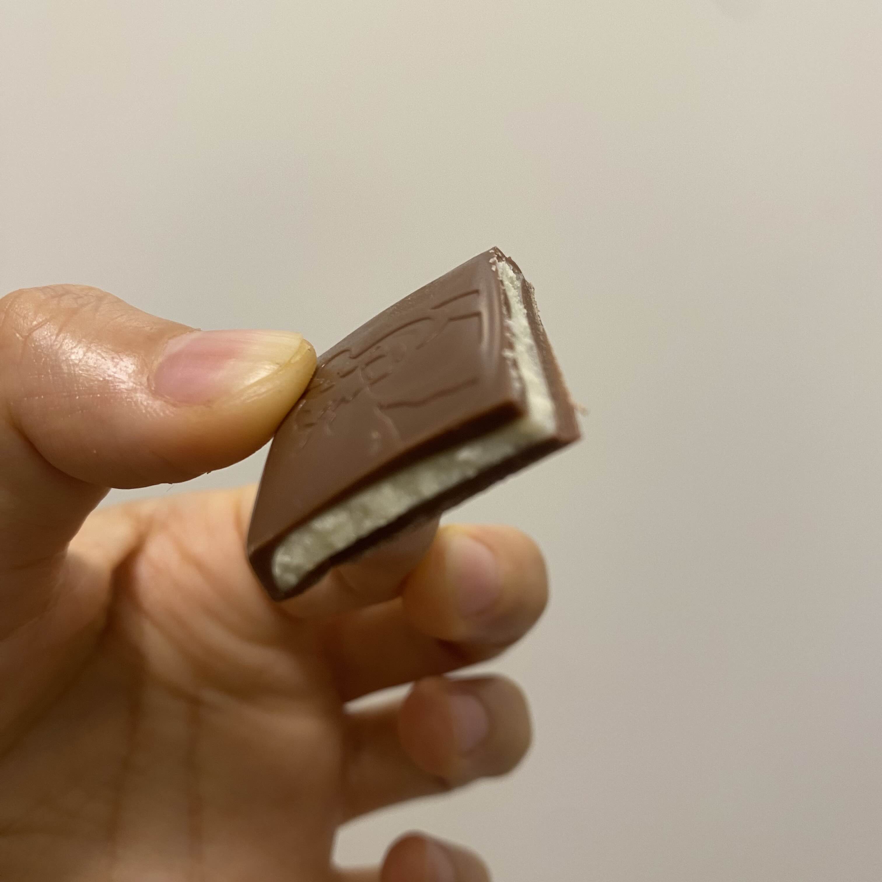 - 밀크 초콜릿 속에 크리미한 초콜릿 필링이 들어간 제품