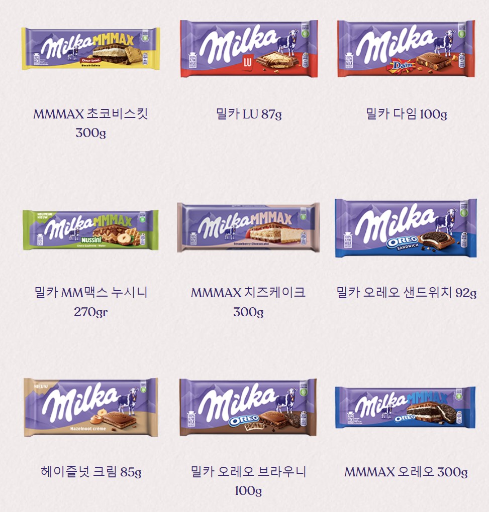 밀카 초콜릿 종류: