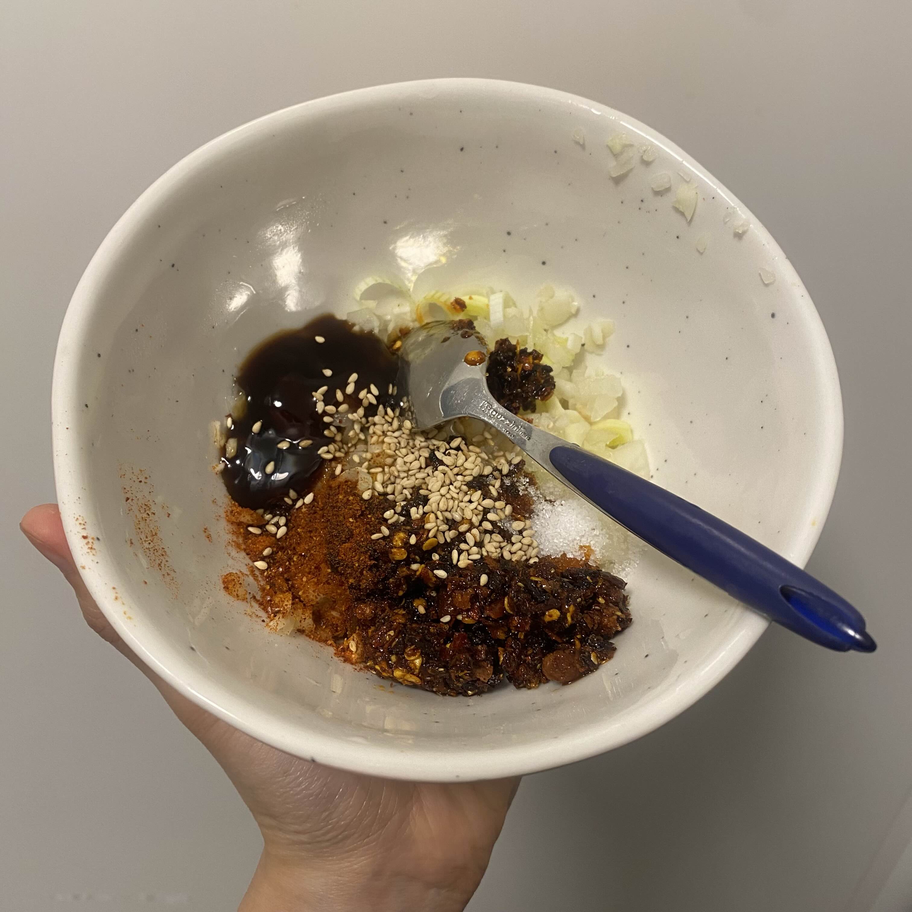 2.양념은 굴소스 한스푼,고춧가루 반스푼,라오깐마한스푼,설탕 반스푼정도