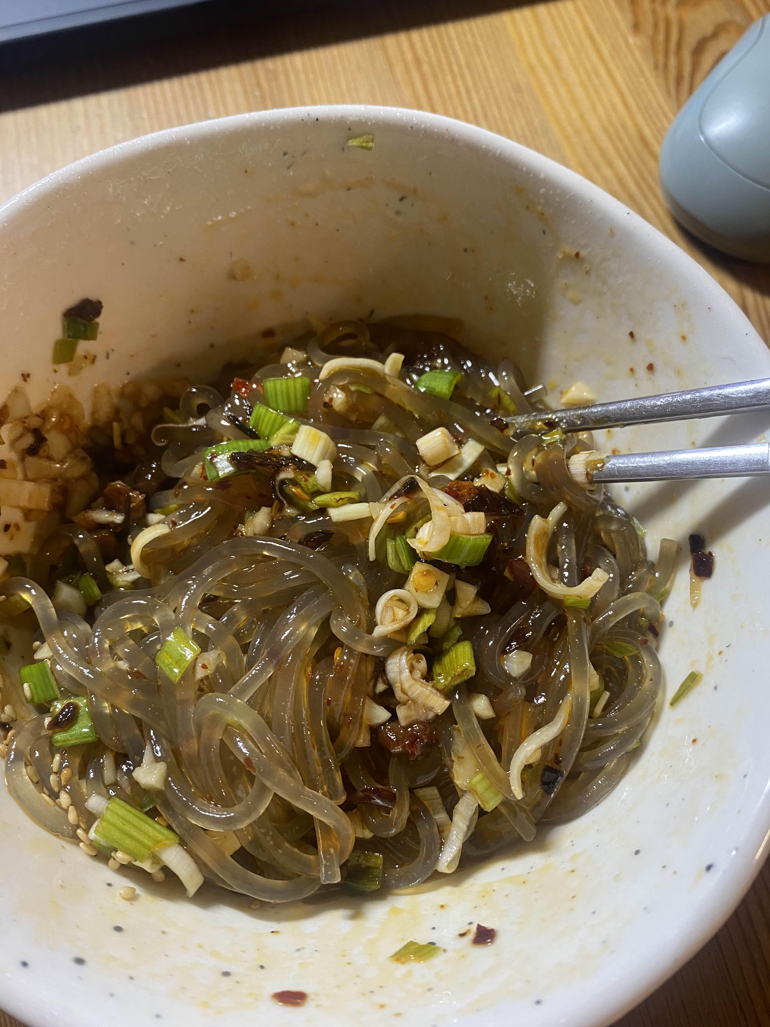 야식. 칠리오일누들. 양조절실패 하지만 대존맛