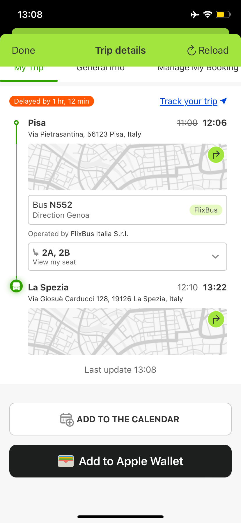 피사-라스페지아 플릭스버스 2인 편도 9.97유로로 끊고