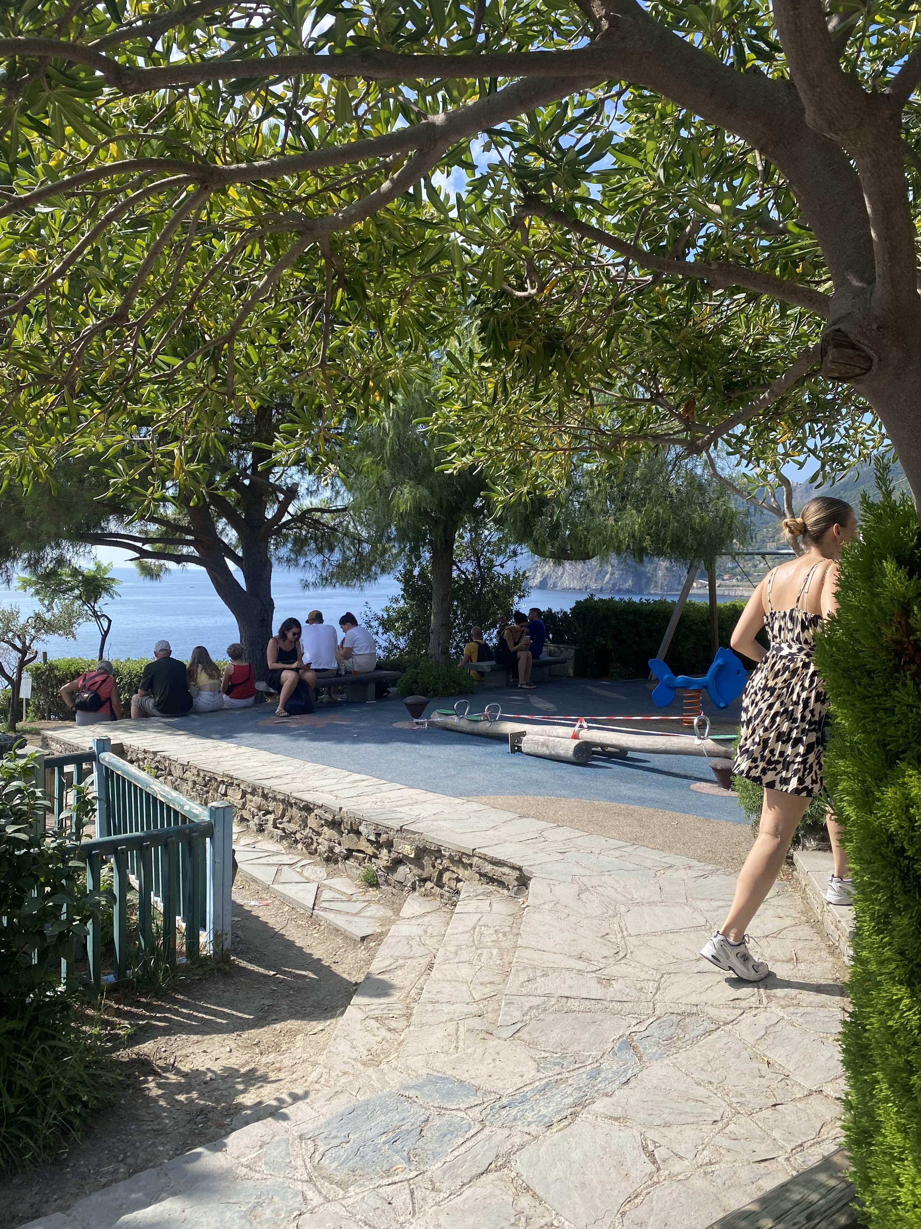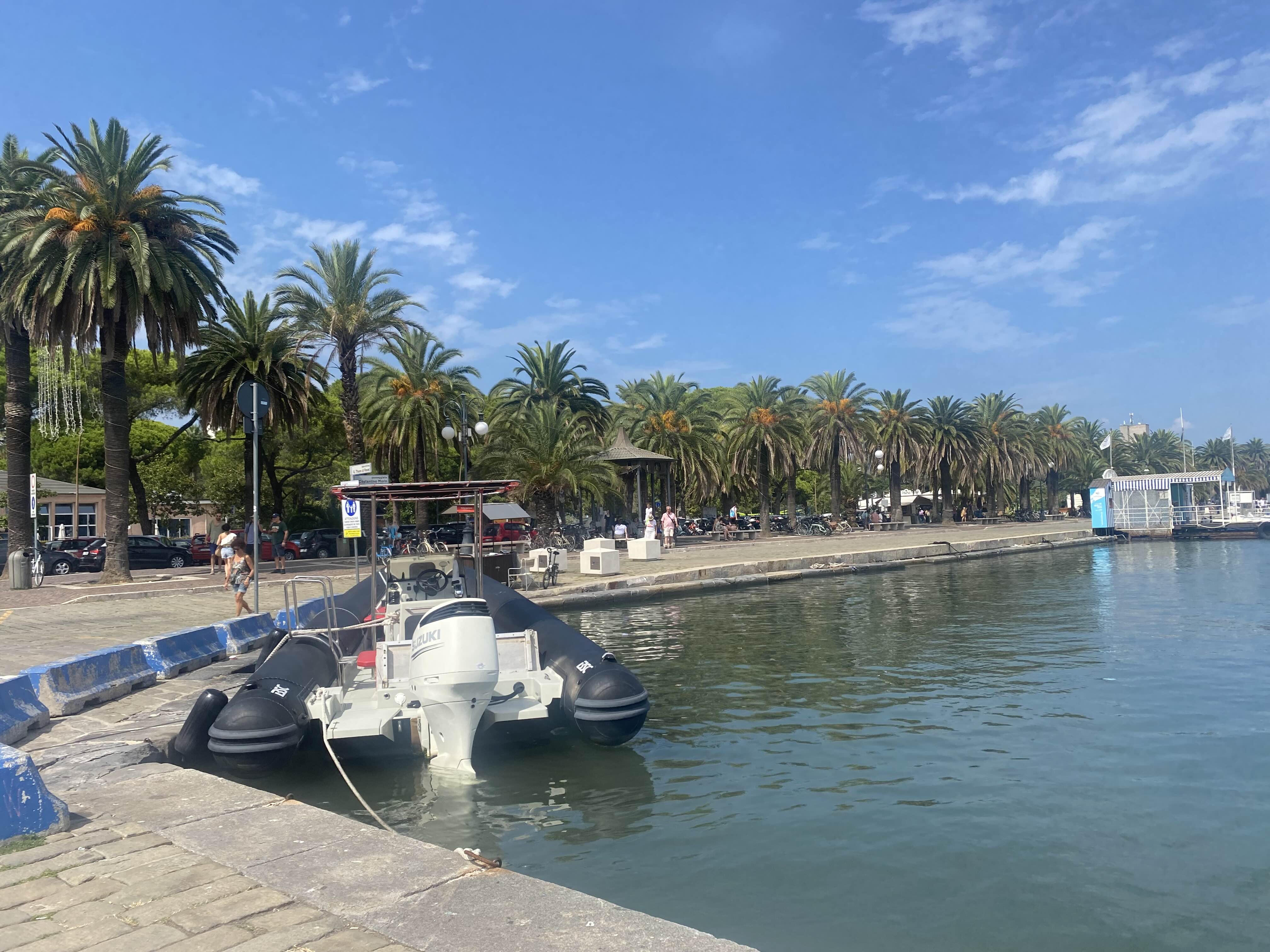 라스페지아의 해변 산책로를 따라 팜트리가 줄지어 늘어서 있어, 지중해의 푸른 바다와 하늘을 배경으로 인상적인 풍경을 만들어냅니다. 특히, 여름철에는 팜트리 아래에서 그늘을 찾거나, 주변 벤치에 앉아 여유로운 시간을 보낼 수 있습니다.