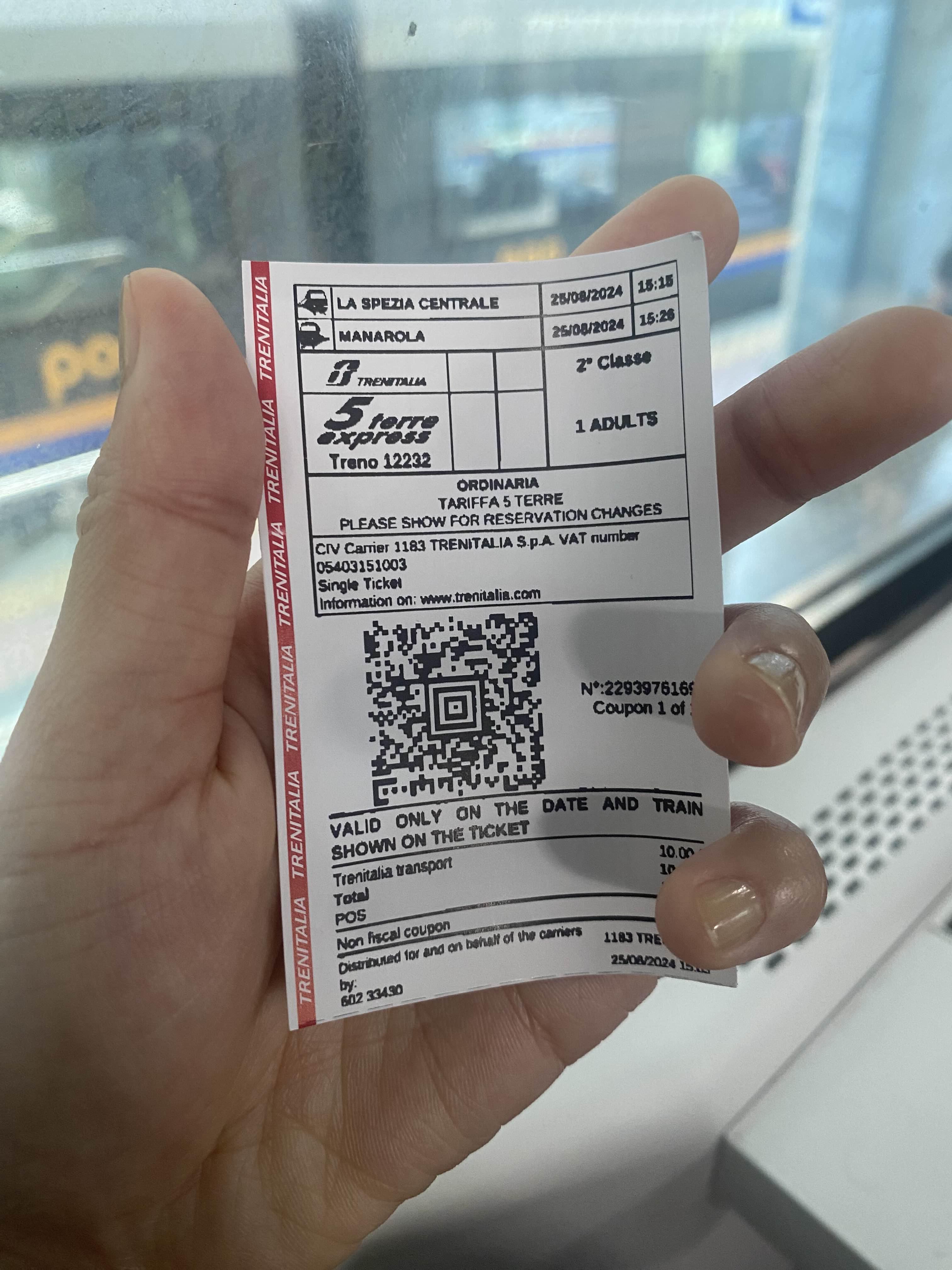 저희는 역안의 발권기에서 마나롤라까지 가는 티켓을 구매했습니다