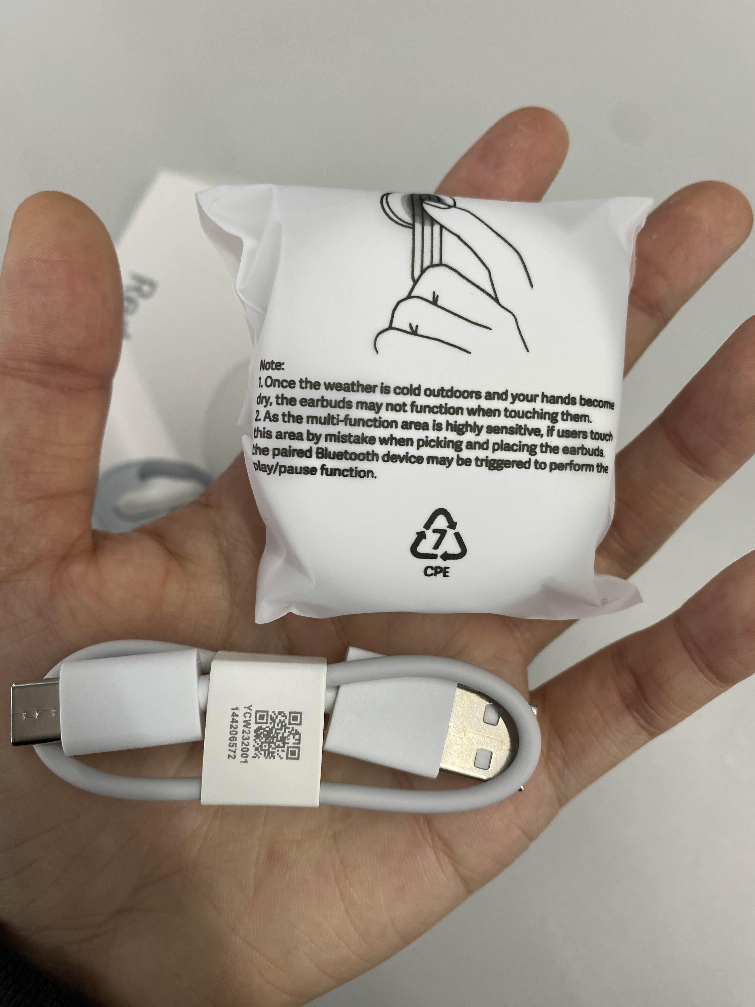 안에는 충전단자랑 예쁘게 포장되어있는 블루투스 이어폰이있다.