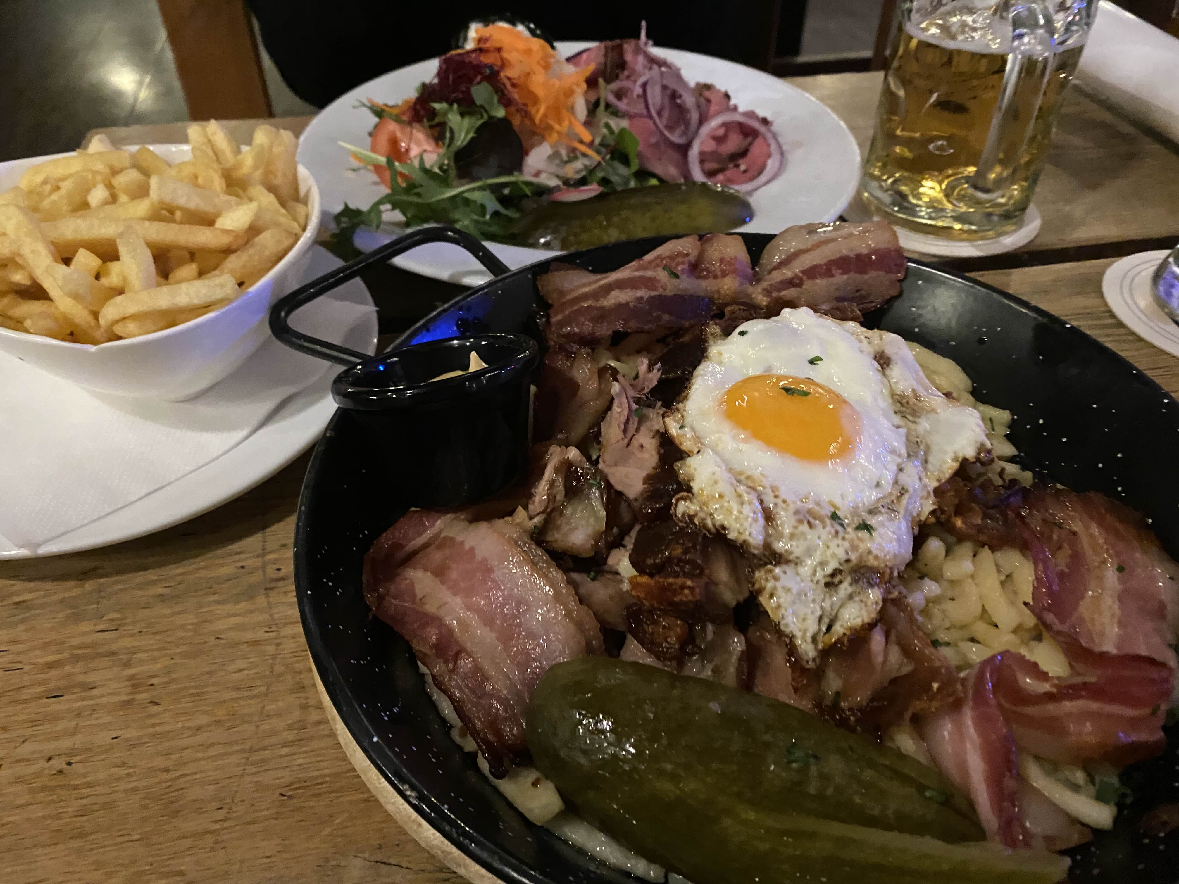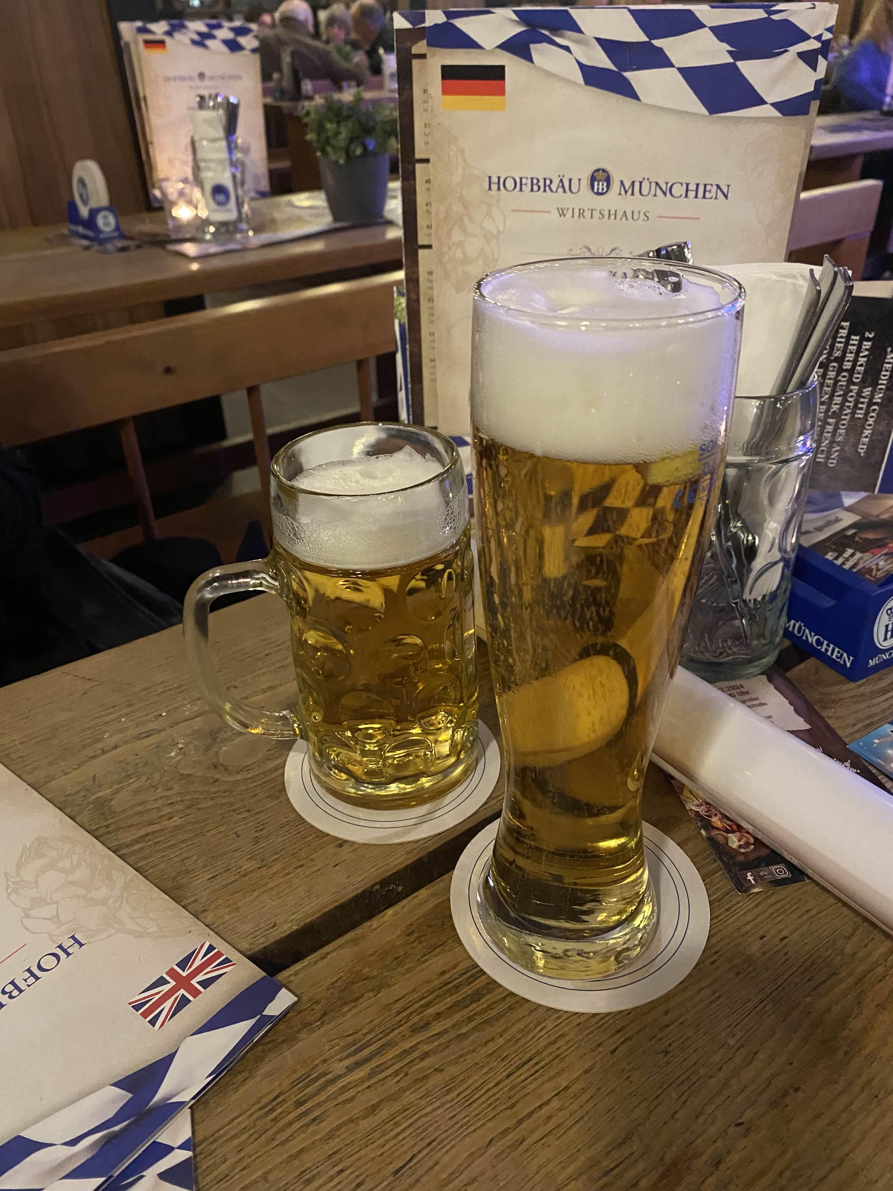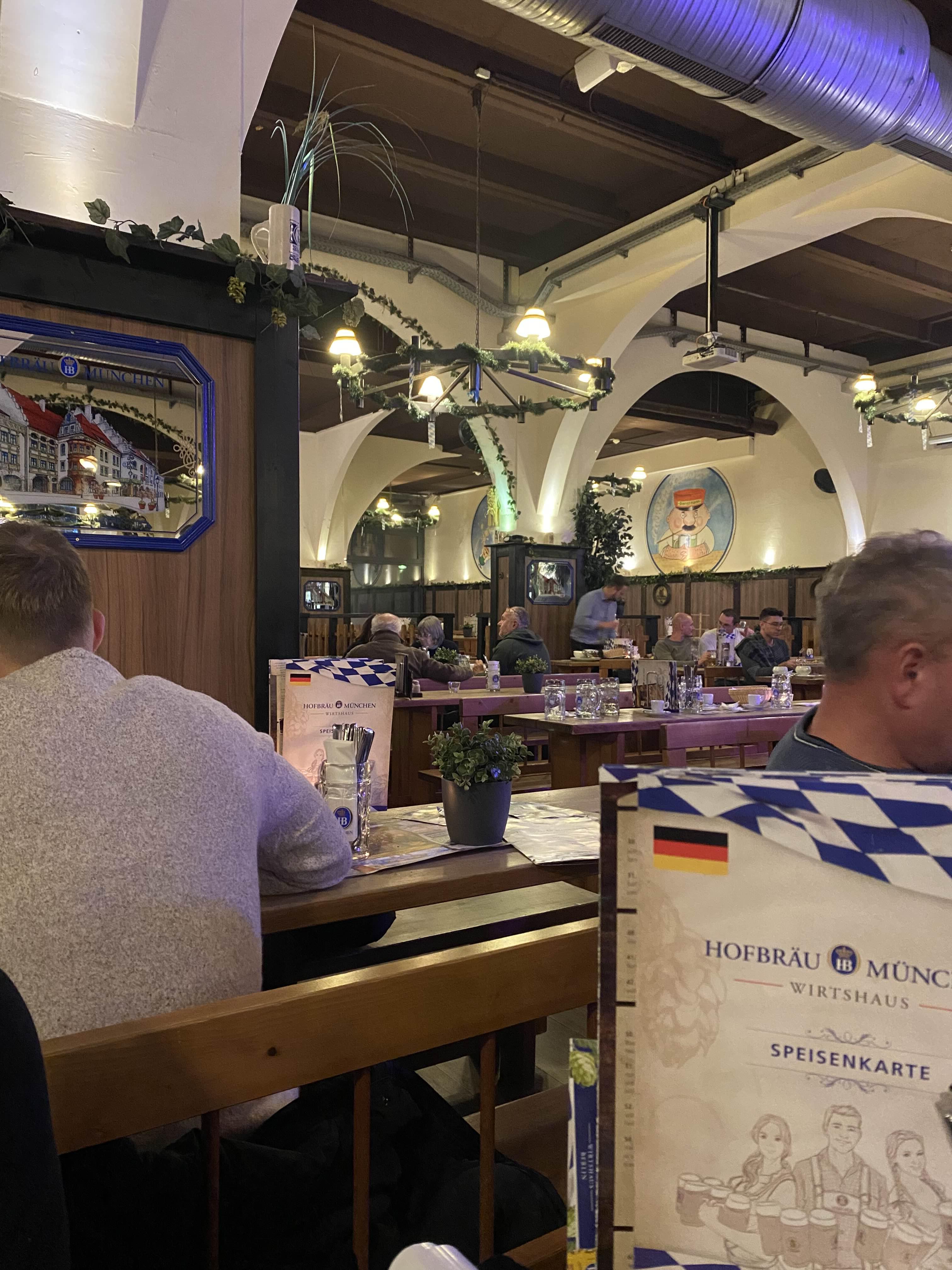 Hofbräu Wirtshaus는 Hofbräu München 브랜드의 맥주를 제공하며, 특히 바이에른 스타일의 라거와 바이젠 맥주로 유명하다고 한다. 맥주는 0.5L 에 6.2 유로였음!