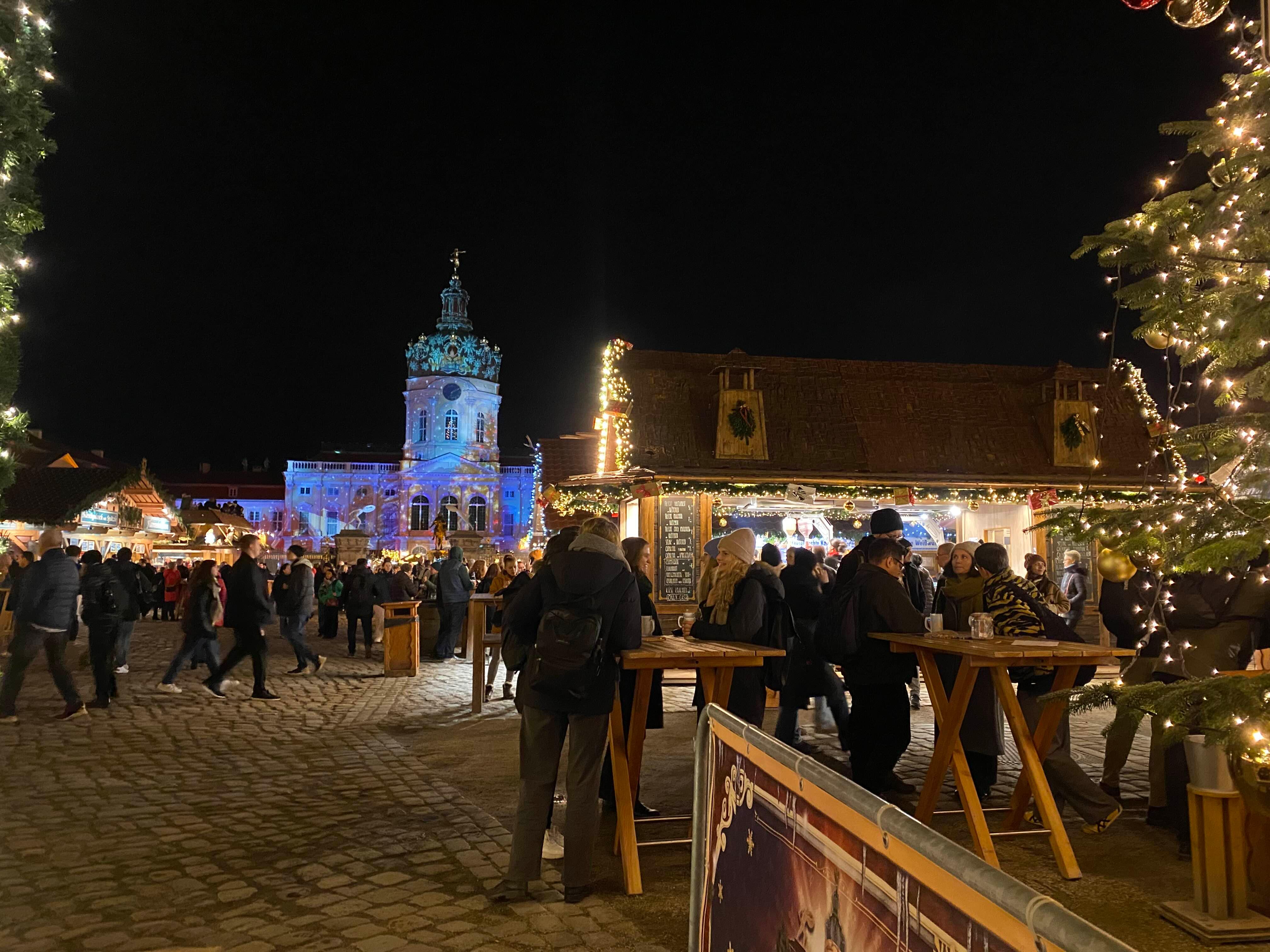 웅장한 샤를로텐부르크 궁전 앞에서 250개 이상의 상인이 크리스마스 장식과 음식을 판매합니다. 오렌지 농장 근처에서 아이들은 향수 어린 놀이기구를 타고 재미있게 놀 수 있습니다.